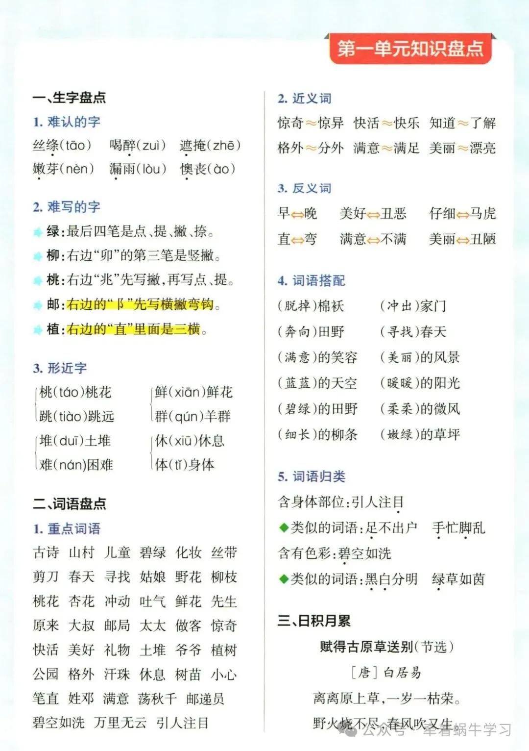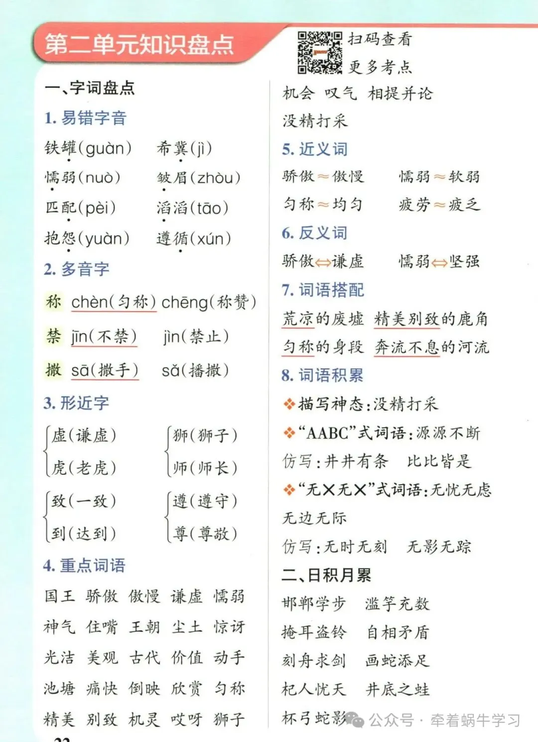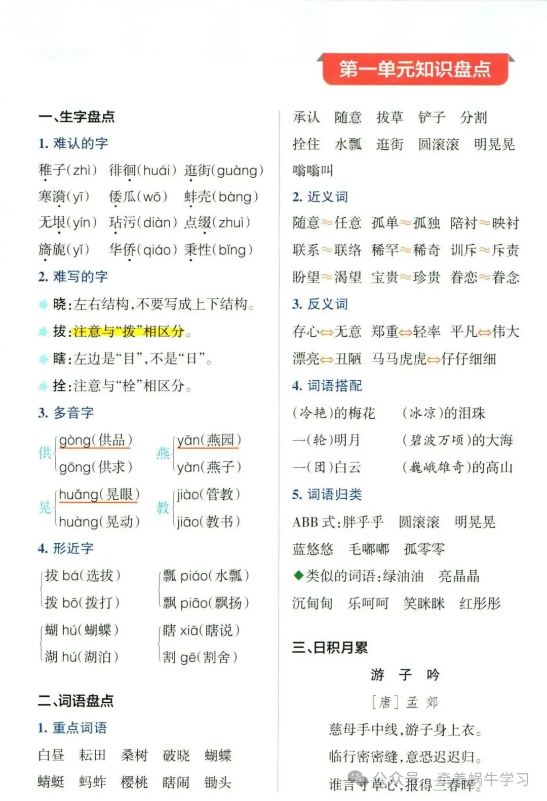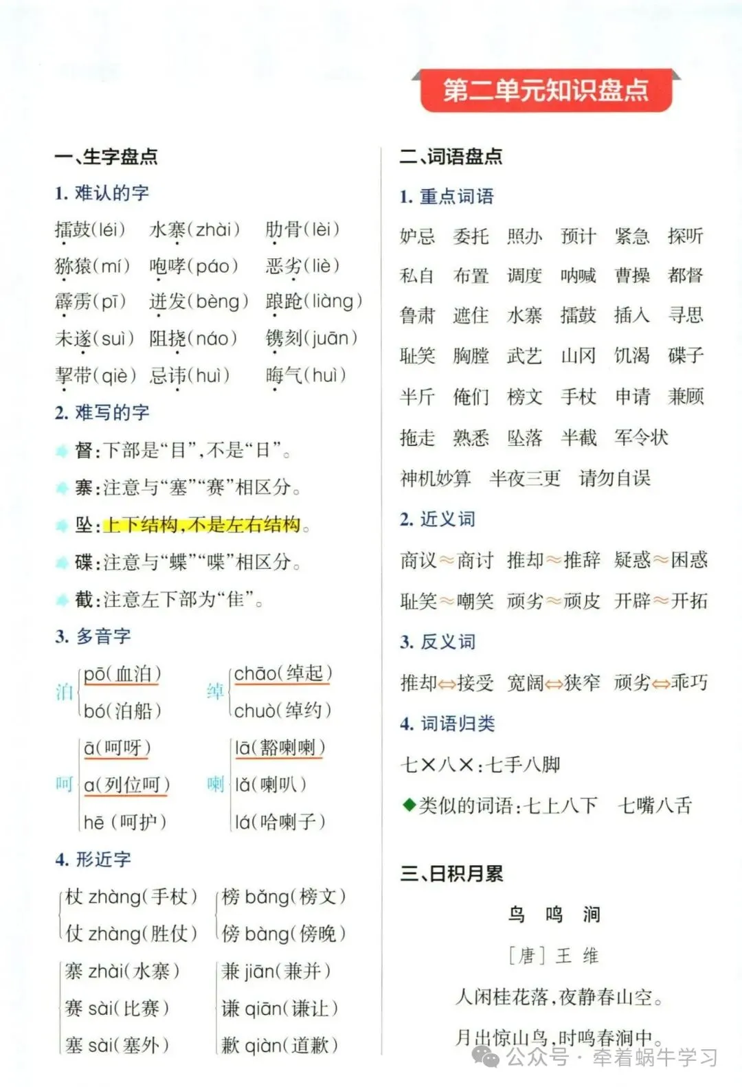 语文1-6年级(下册)《知识盘点》,因篇幅有限,资料不过多展示。文末有全册电子版领取方法,欢迎下载和打印。