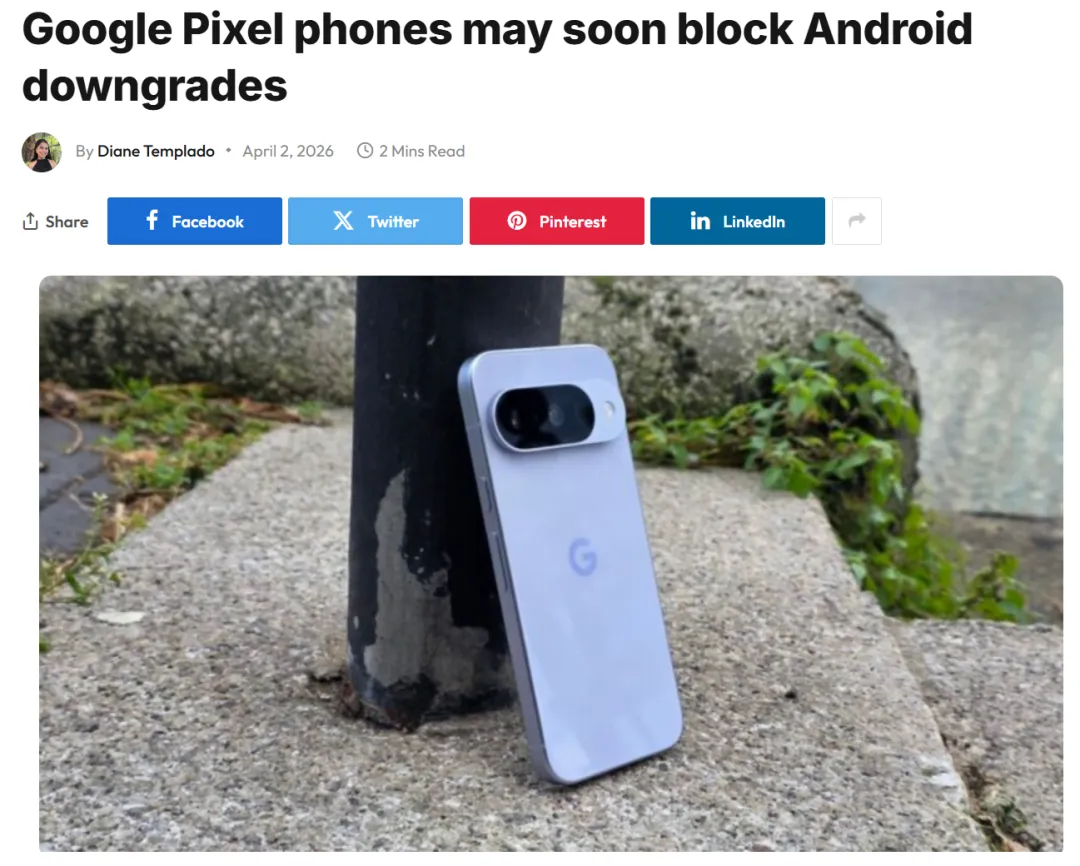 4 月 3 日消息,科技媒体 Android Authority 发布博文,报道称谷歌即将收紧 Pixel 10 系列(10a 除外)手机的系统降级权限,阻止用户降级至旧版系统。