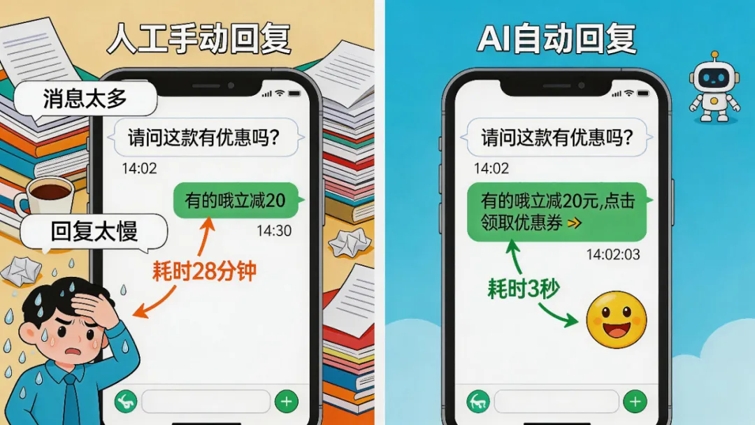 现在:AI秒回,用户1分钟内拿到链接 ✅省去人工。