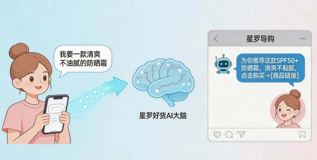 现在每天的选品转链、顾客推品,都可以丢给星罗好货。你只管去做更能赚钱的事:引流、维护核心用户、谈合作。