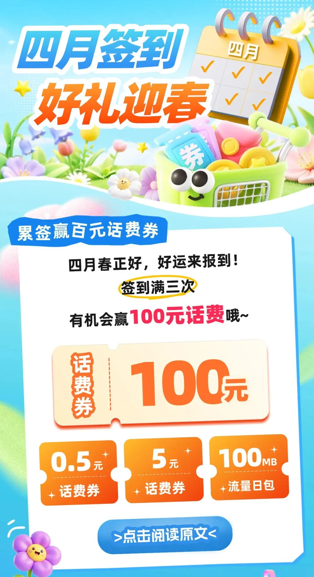 中国移动APP签到领话费流量,至高得百元!