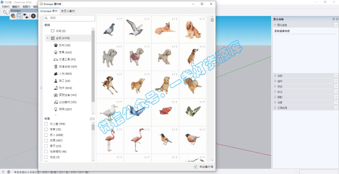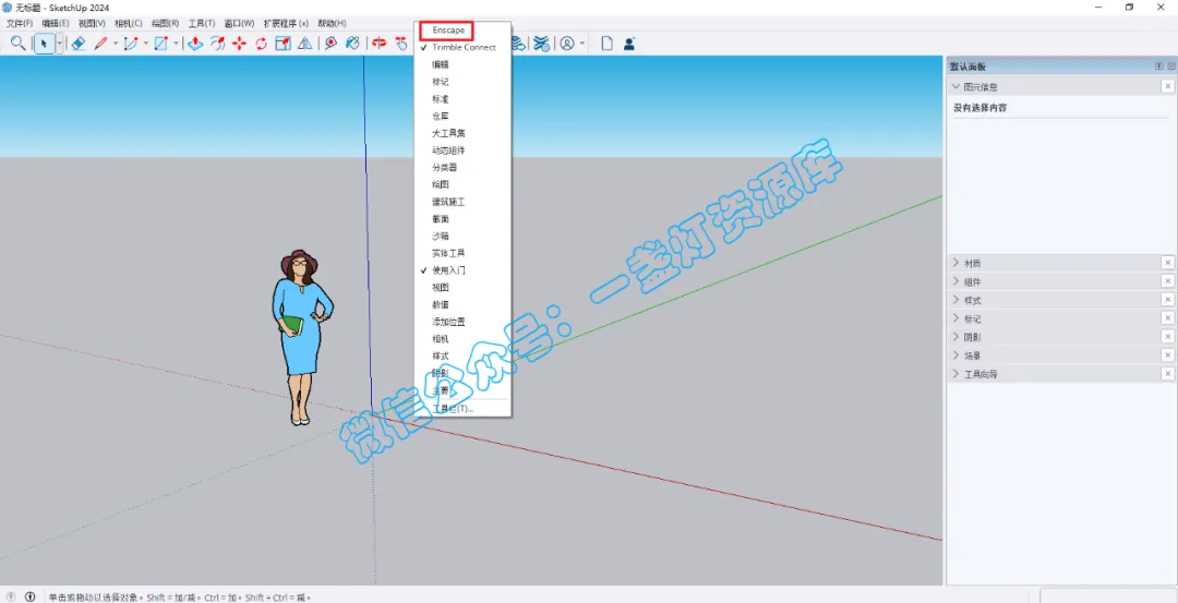 3.点击Enscape的【素材库】图标
