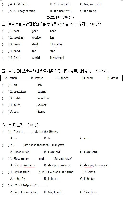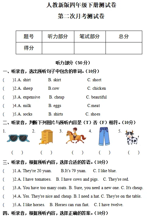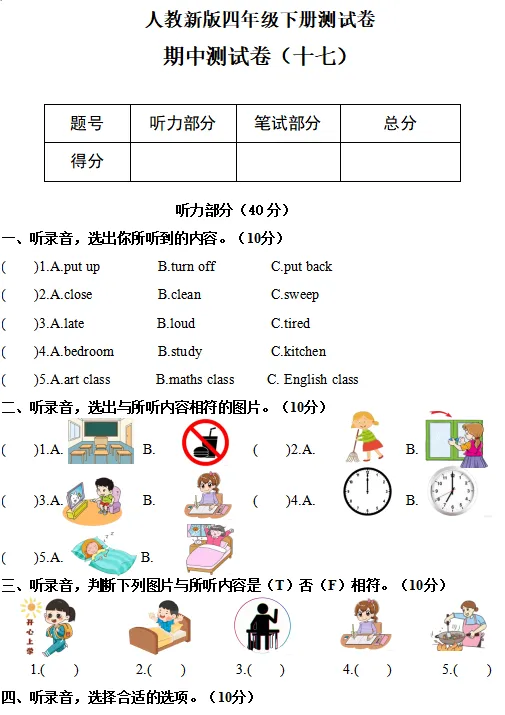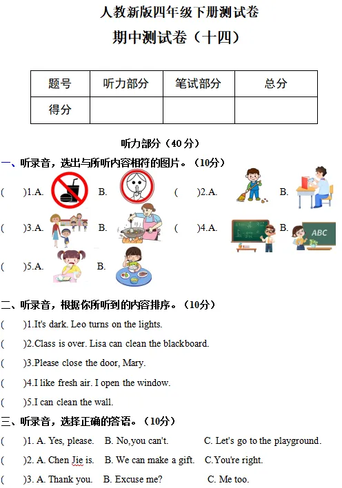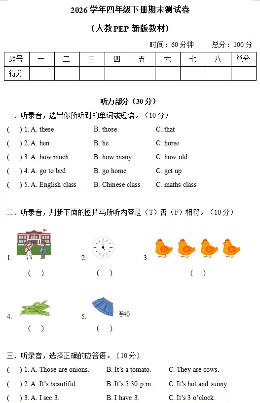 【电子版】2026人教(PEP)版 小学四年级英语下册 (同步练习+单元测试+ 期中试卷+ 期末试卷)全套下载 可打印