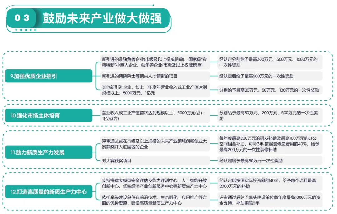 政策支持符合人工智能、低空经济、脑科学与类脑研究(脑机接口和类脑智能)等未来产业领域项目未来进行申报,并根据不同领域的应用场景归纳补贴规则。未来科技城希望通过政策引导,吸引全球的科研机构与人才,促进企业间资源共享、技术交流与合作创新,助力企业抢占人工智能、低空经济未来的制高点。