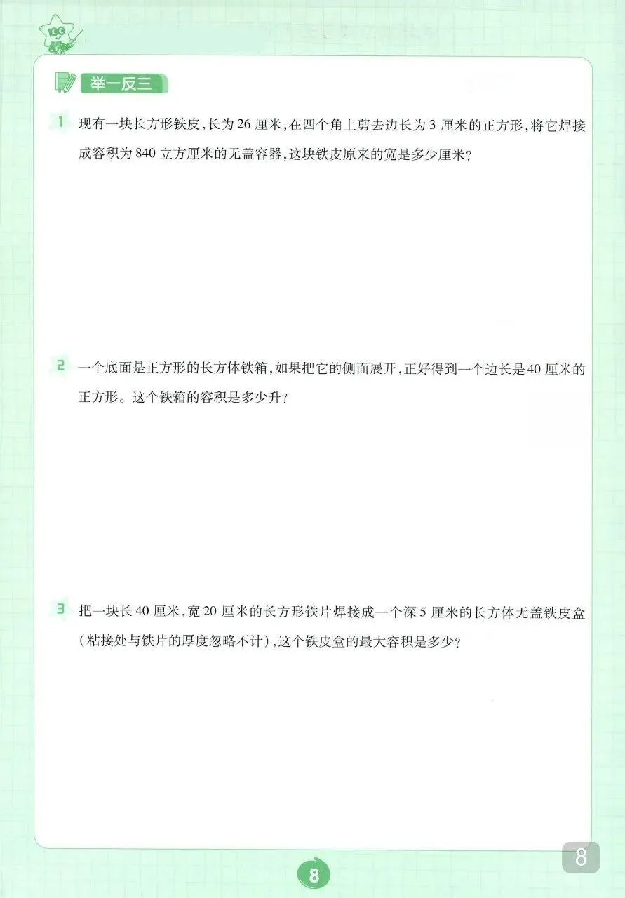 五年级(下)数学 思维训练专项.pdf 篇幅有限,无法全部展示。 请按照文末方式领取,无门槛永久免费,欢迎转发,帮助更多有需要的人~ 温馨提示: 文末有完整电子版领取方式! 领取完整电子版: ①:点一点右下角的“👍”和“❤️” ②:在公众号对话框中回复“资料1637”