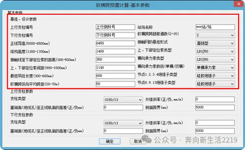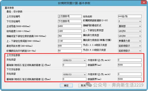 软件结算结果如下图,图中红色标注部分为参数在软横跨中的显示。