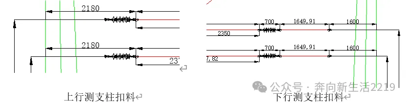上下部定位索支柱侧扣料从支柱外沿算起,计算前,应根据各工地情况测量扣料长度,以使计算结果准确。