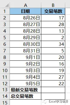 下图 1 的数据表是一个顺序序列,每天都会需要在最下方新增日期,并更新当天的数字。