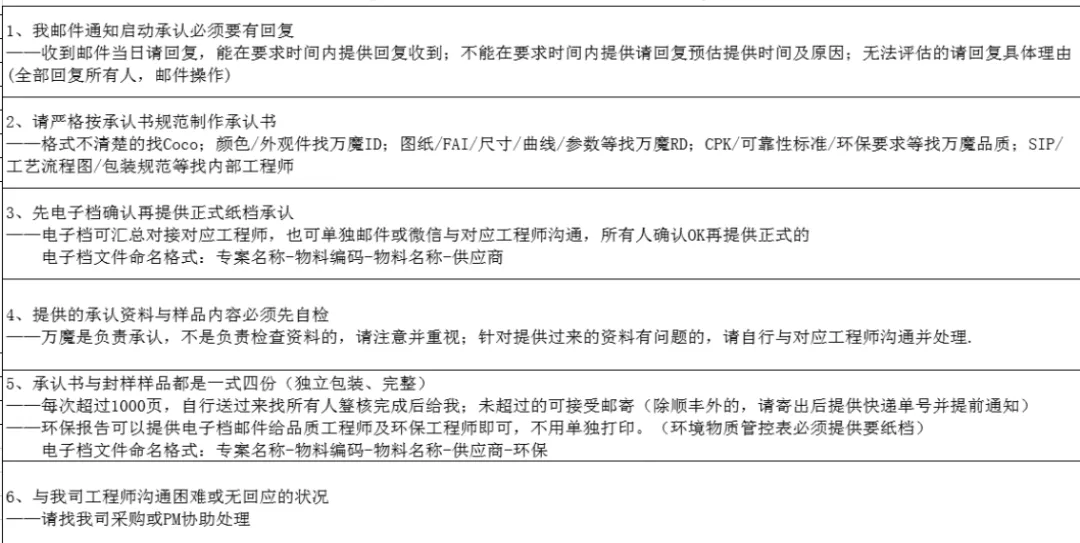 *若材料测试报告不完整,供货商须保证材料符合相关法规要求;万魔及其客户要求时,供货商须配合提交第三方报告。