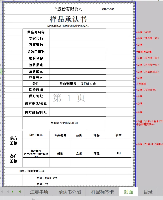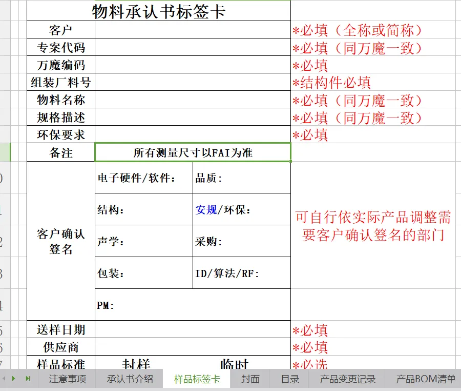 1.是,请填写此表格黄色部分,不用填写《材料成分宣告表》,通过系统提交环保数据的产品,其承认书需包含此页。
