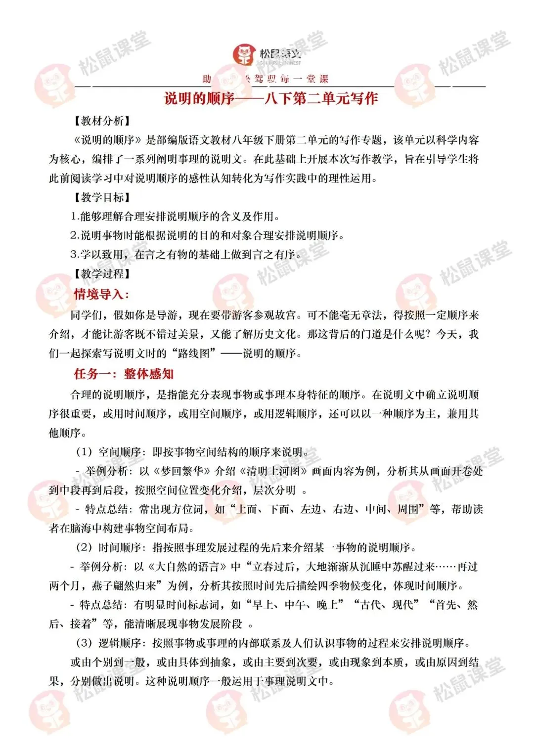 「��赛课金奖」八下第二单元写作《说明的顺序》| 写作逻辑:直接拿捏! 文末附课件获取方式,获取课件和教学设计,请滑至文末~~ 课件预览 完整PPT共28页 教学设计 篇幅有限,仅展示部分教学设计~ 👇 关注公众号 发送“松果”获取课件和教学设计~