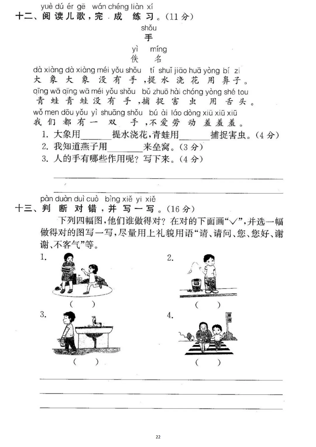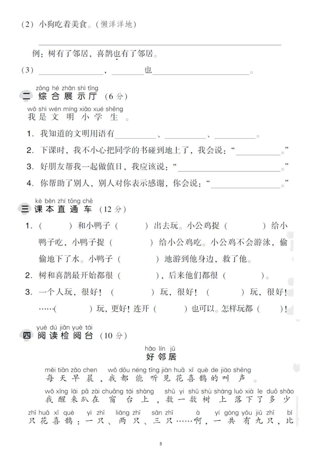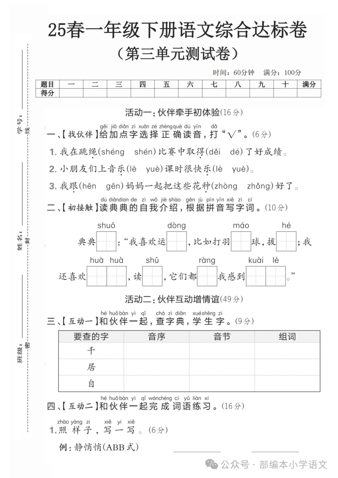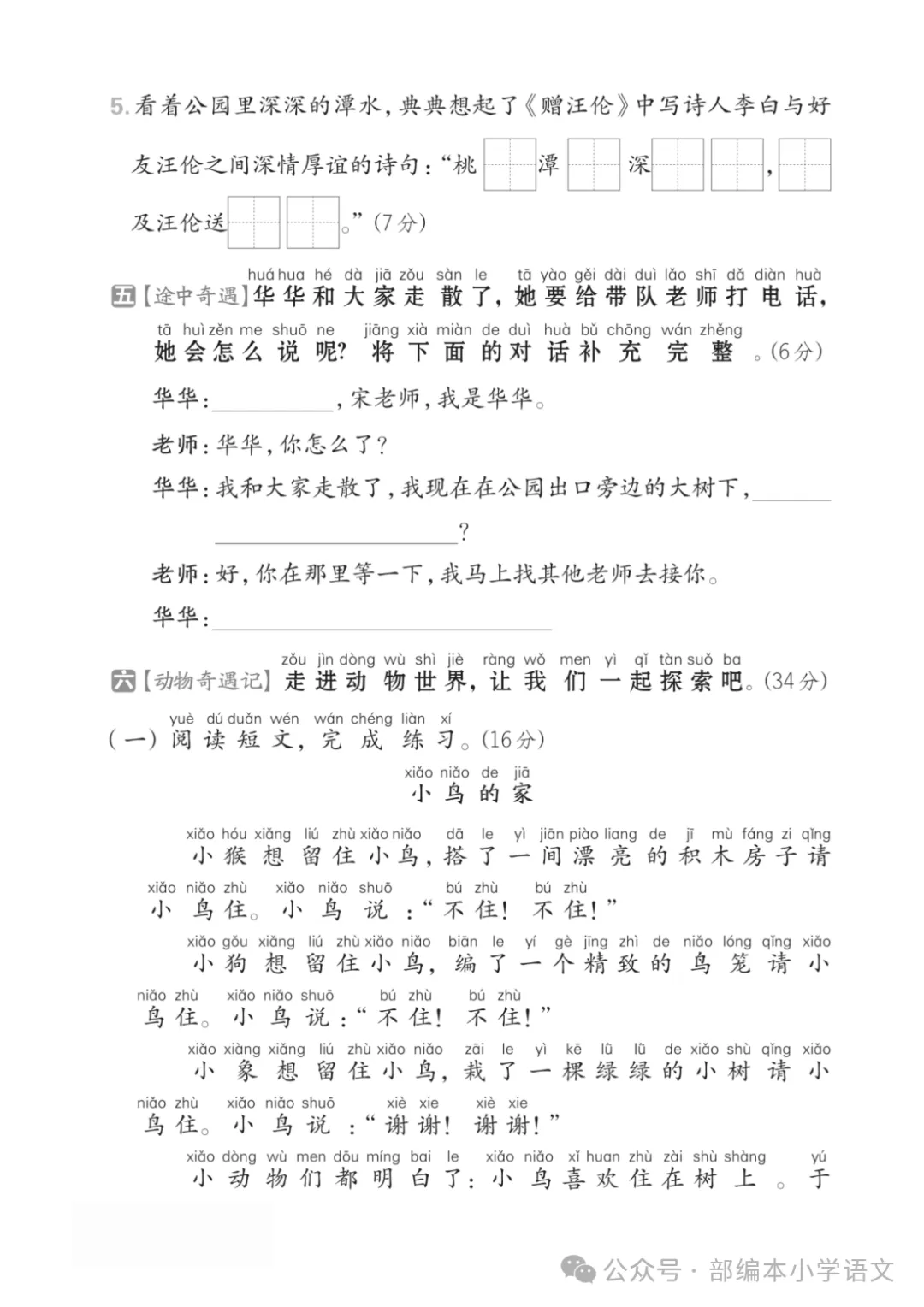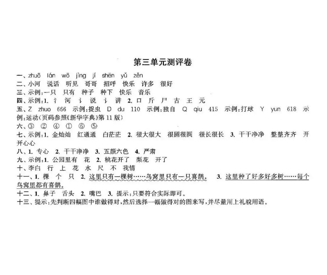 一年级下册第三单元检测卷6套,免费下载