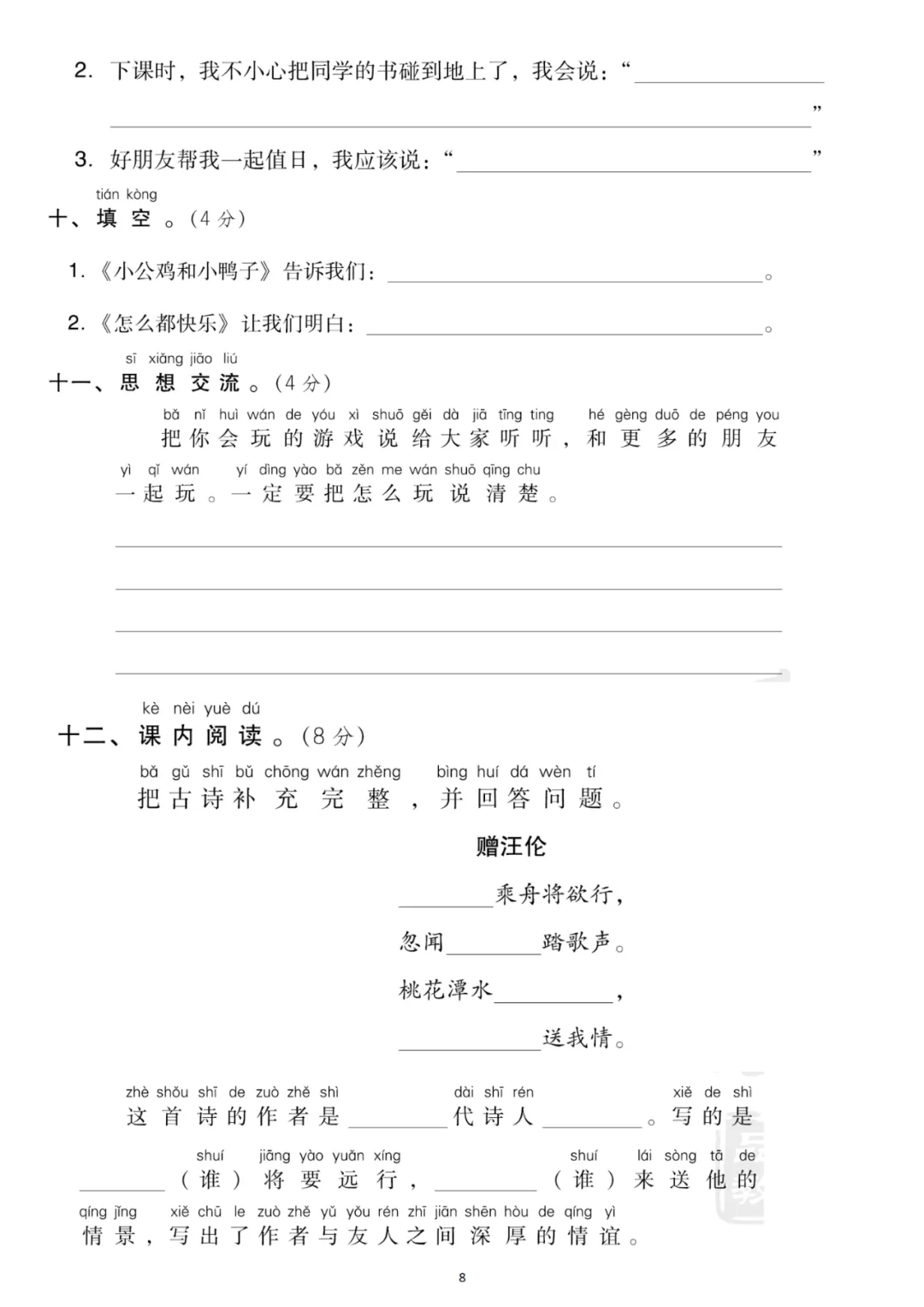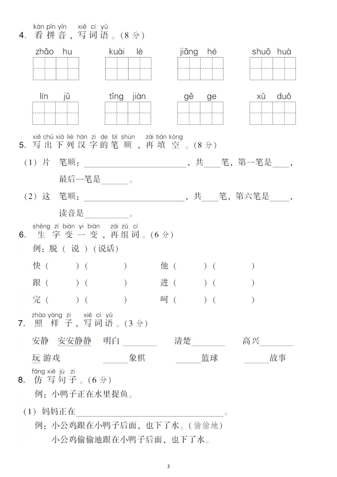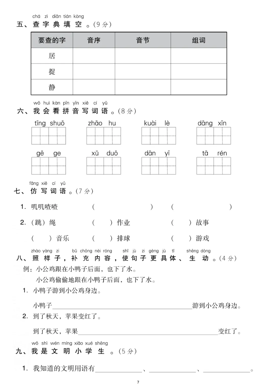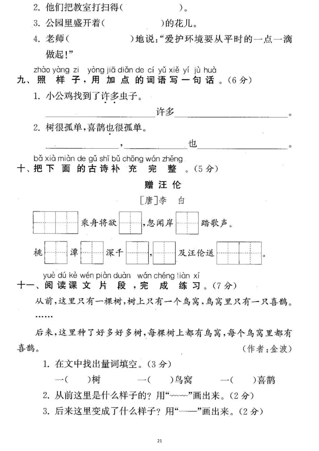 一年级下册第三单元检测卷6套,免费下载