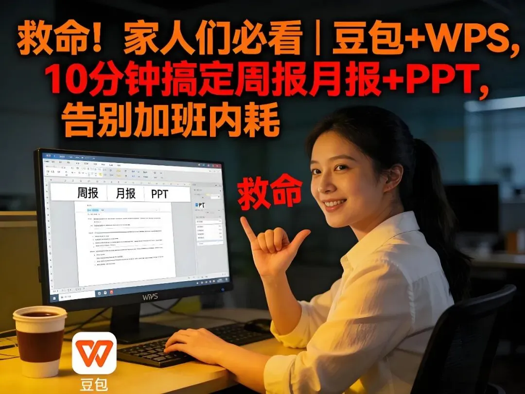 救命!家人们必看|豆包+WPS,10分钟搞定周报月报+PPT,告别加班内耗