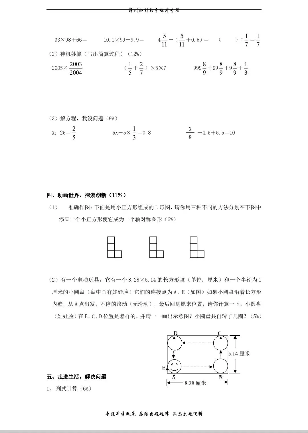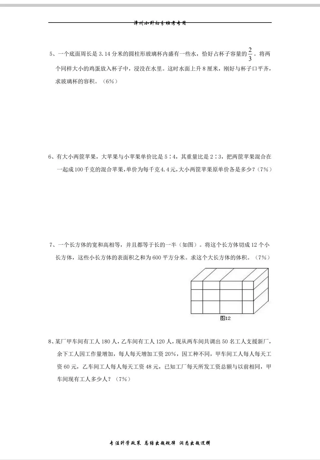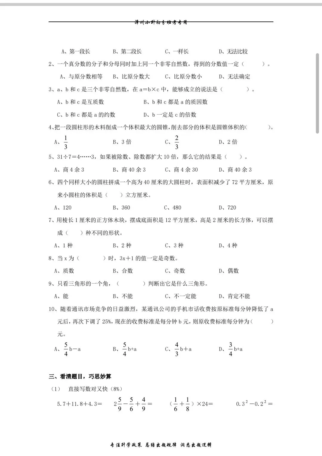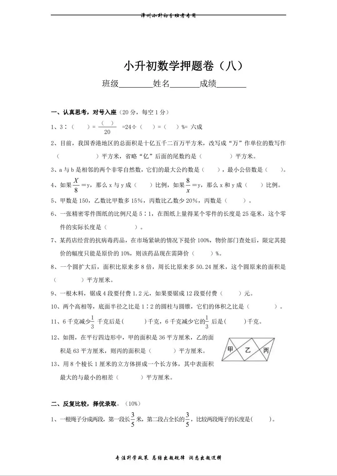 小升初数学十份考卷有电子版加答案