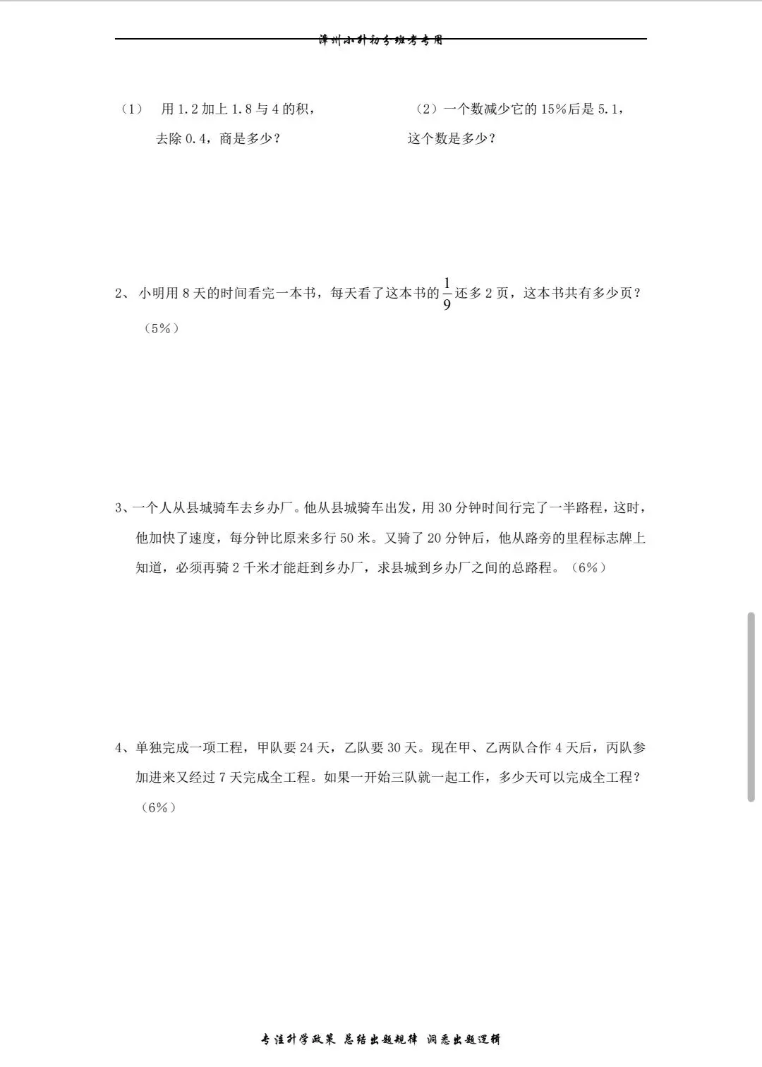 需要十份考卷的留言哦