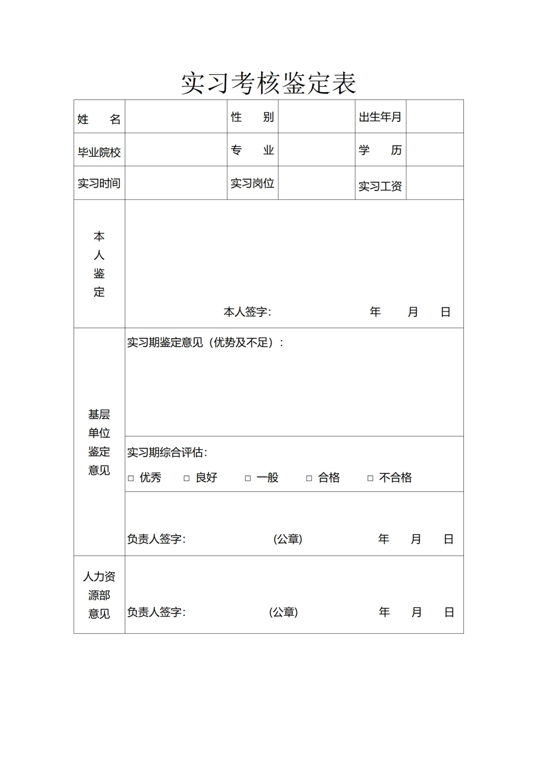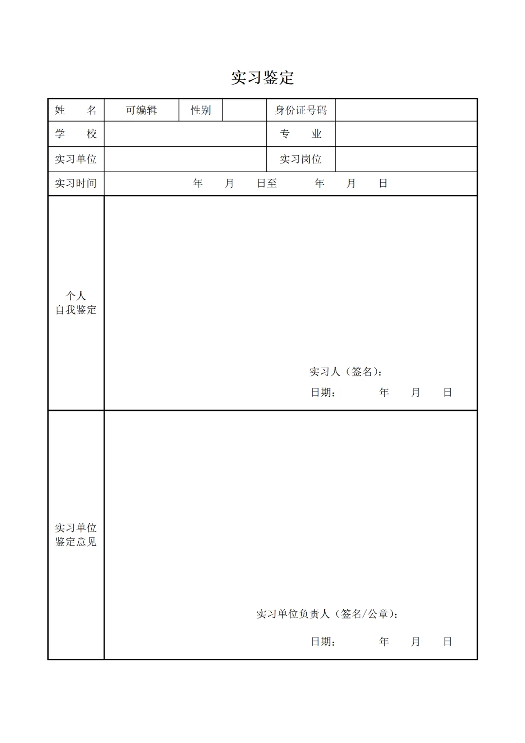 大学生实习鉴定表word可编辑|免费分享