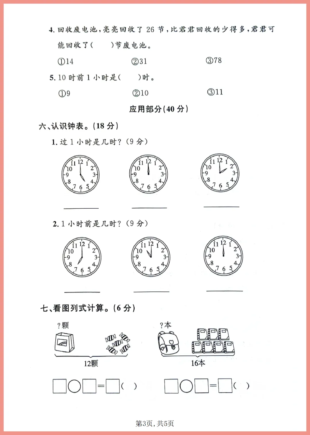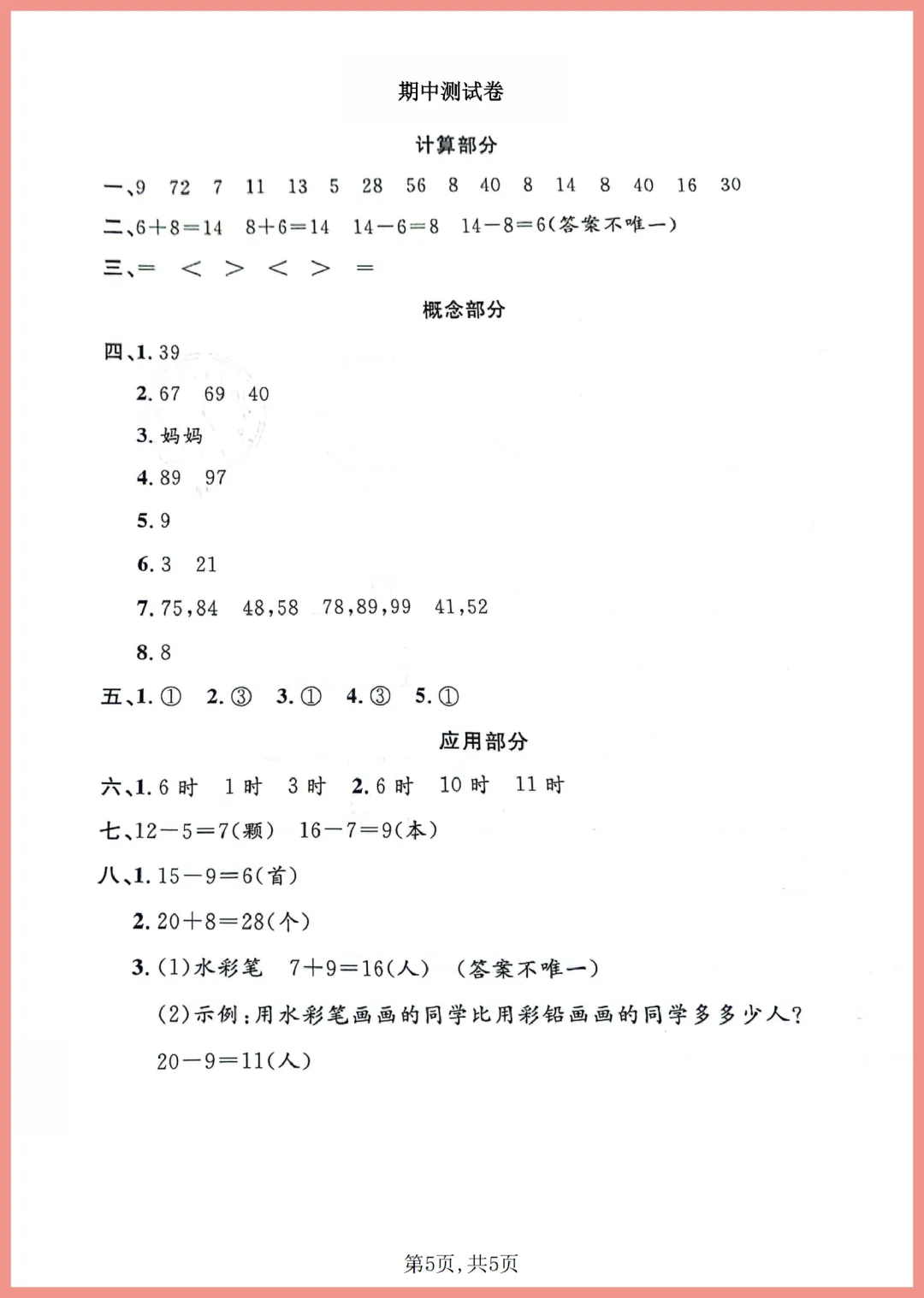 【免费下载】一年级(下)数学_期中拔尖测试卷《沪教版》 | PDF完整高清电子版可打印