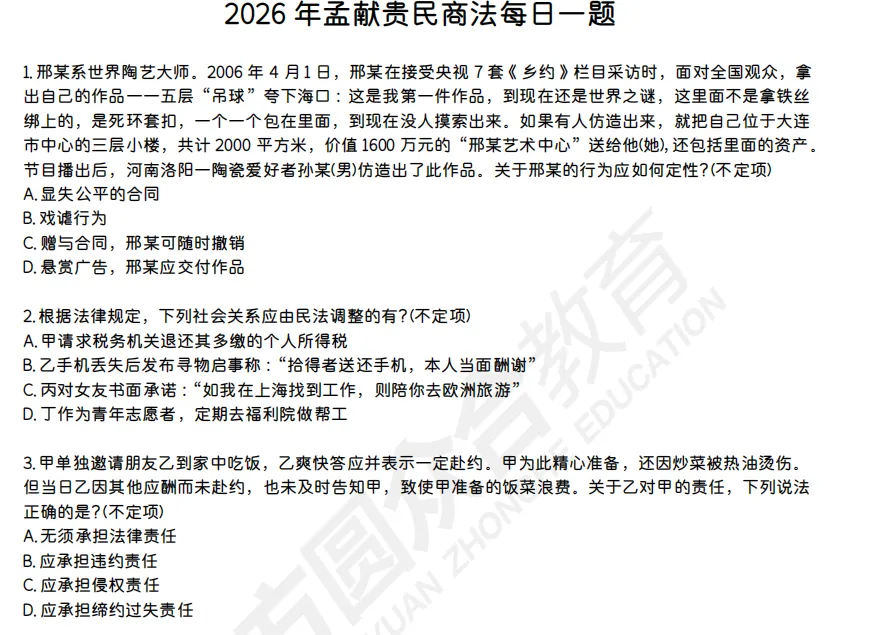 孟献贵2026届民商法每日一题pdf 2026孟老师民商法每日一题来了 1-130题汇总 添加微信,或者扫描二维码领取 ㊗️各位2026年法考必过 众合法考法硕班次,全国招生中,欢迎随时咨询 欢迎大家联系,微信:13956921944