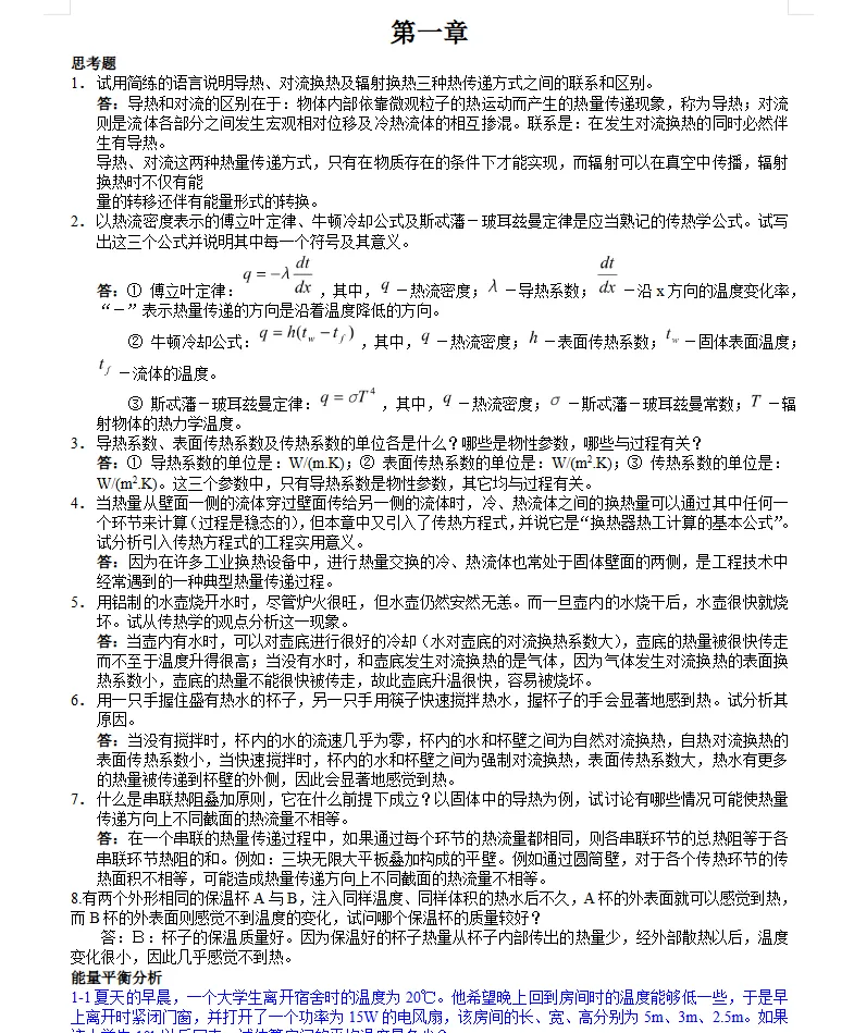【免费教材】《传热学-第三、四版 杨世铭 陶文铨 》-大学教材+习题答案-PDF可打印