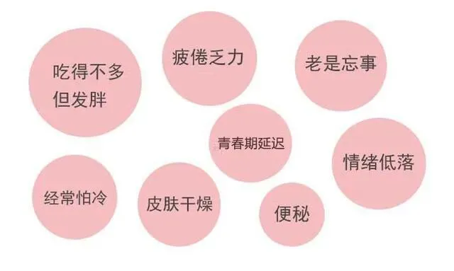 嗜睡、乏力、怕冷、便秘、消化不良、厌食、体重增加、记忆力减退、生理周期紊乱、精神萎靡、情绪低落