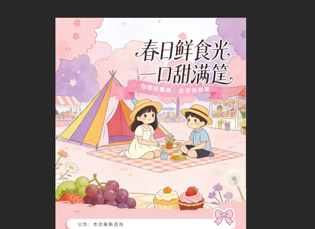 以春日野餐、帐篷市集为核心场景,把「买水果」这件事,转化为「赴一场春日甜约」的情绪体验 -