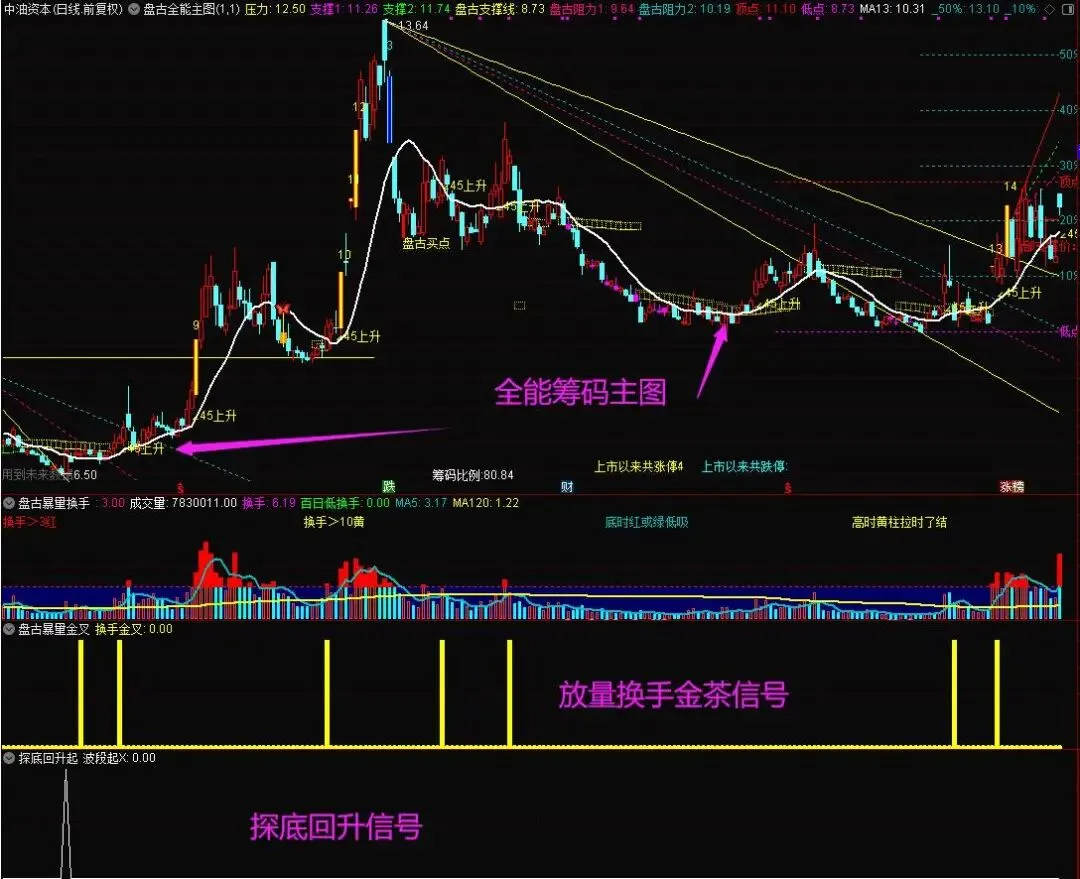 探底回拉:波段启动 通达信公式指标源码