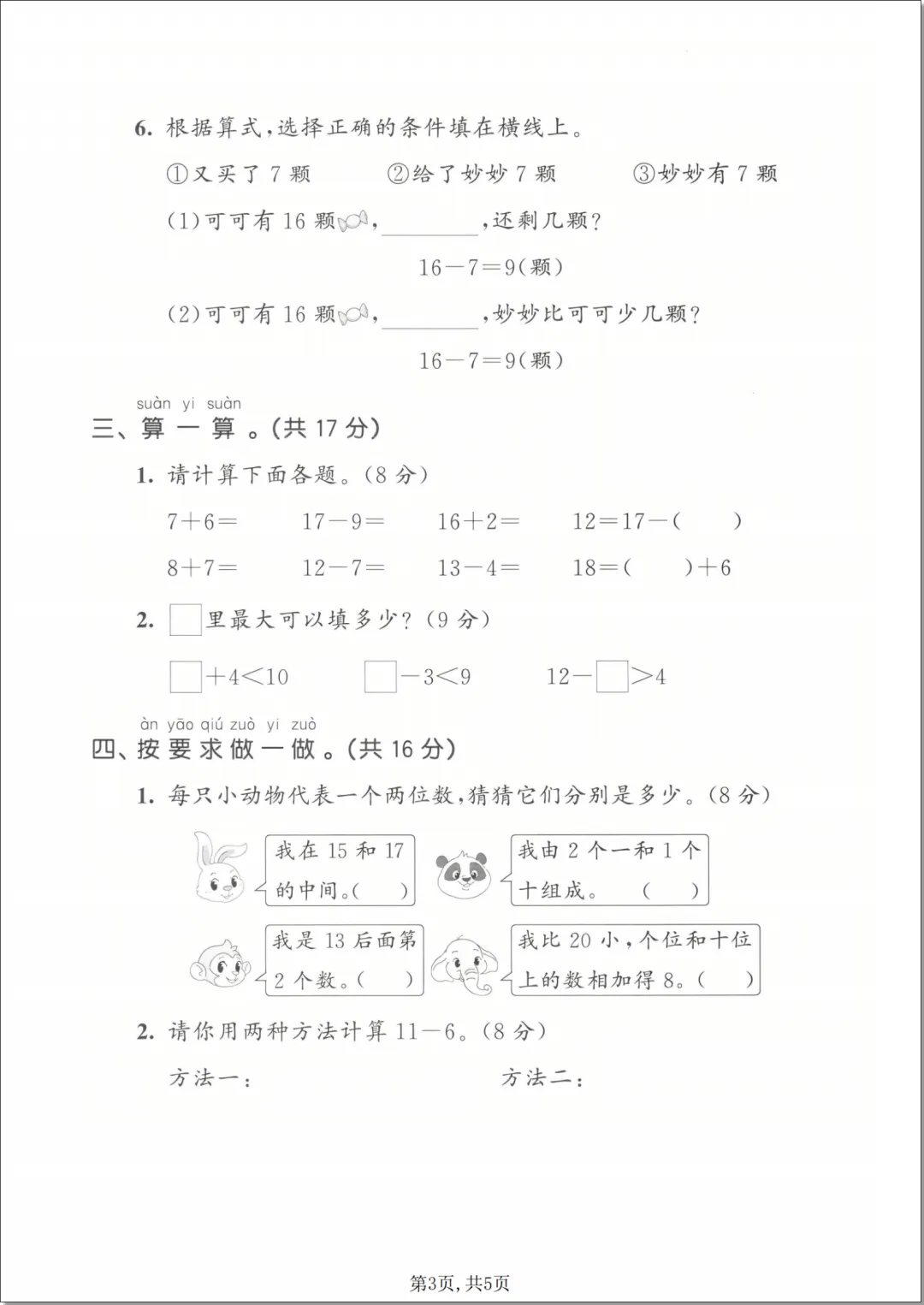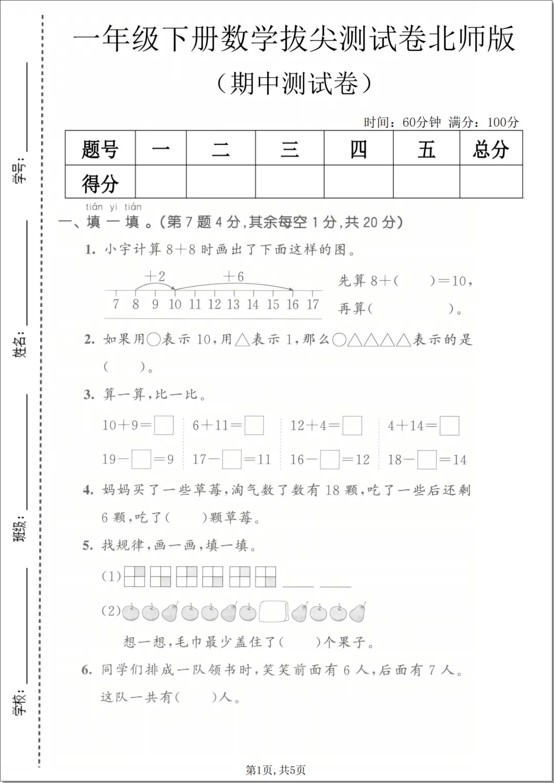 一年级(下)数学 期中拔尖测试卷《北师版》,PDF电子版免费领取,先保存后下载,可打印