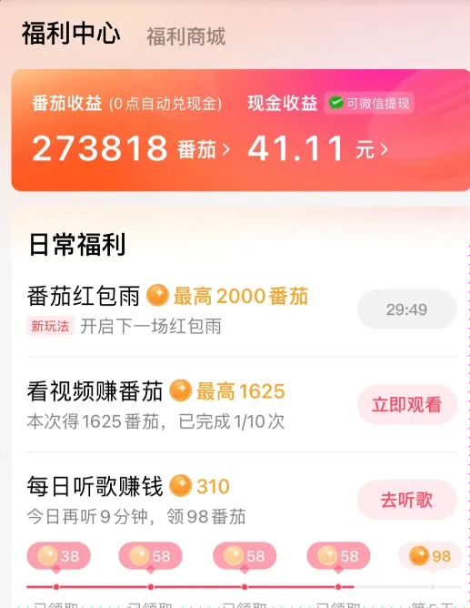 第一种是做任务拿“番茄”,每天做满大概10万左右,但换算下来其实就几块钱,这个更适合纯碎片时间。