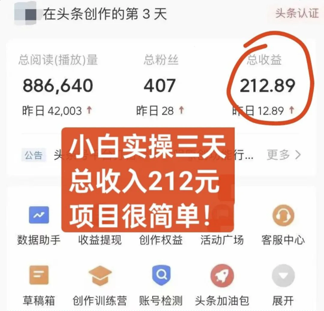 第三种是微头条创作,门槛非常低,基本0粉就能有收益。