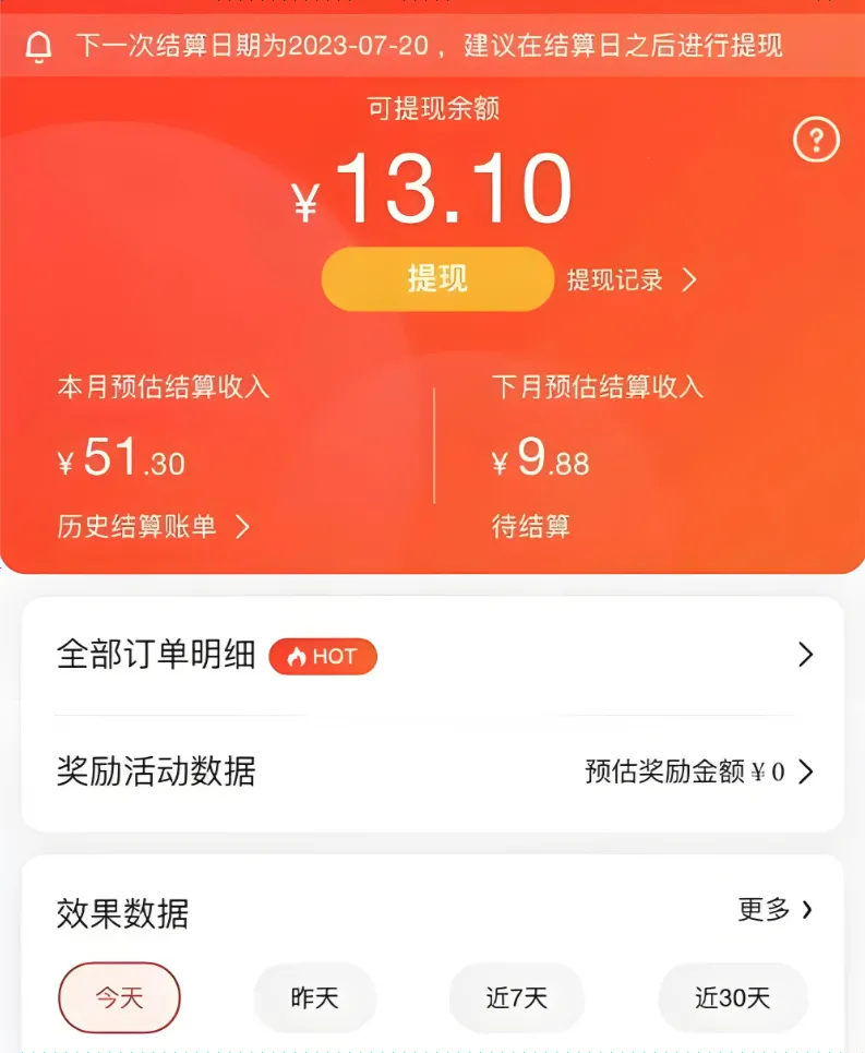 像一分购、外卖、旅行这些项目,尤其是外卖推广,佣金最高能到270。