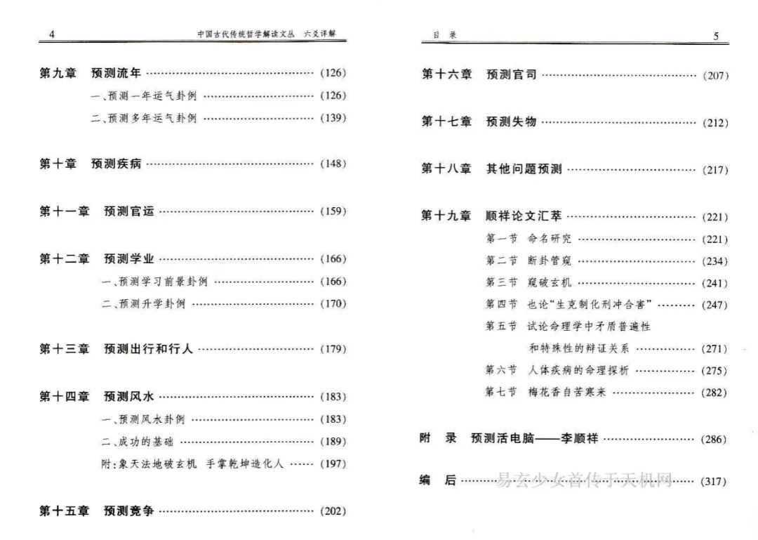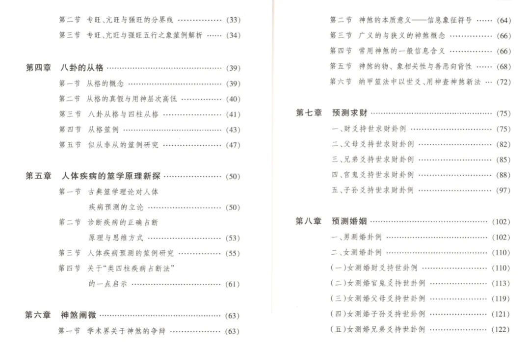 书籍简介:本书弥补了先贤原有体系中的缺陷,并纠正了其中的谬误,使六爻预测在准确实用方面提升到了更高的境界。将四柱命理融于八卦纳甲筮法之中是本书的一大亮点,提出了“类四柱占断法”等全新的学术观点。六爻卦和命理学一样,也需要划分格局,书中详细论述了纳甲筮法中的专旺、亢旺、强旺以及从格格局的划分标准与方法及其各自的吉凶意义,纠正了“用神越旺越好”之谬误,同时指出了测疾病仅以官鬼是否有制来断吉凶的不妥之处:此外,还论述了“综合运用年、月、日、时衡量卦爻的旺衰强弱,纳干在断卦中的作用,神煞在六爻占断中的作用及其技法”等诸多尖端学术问题。书中列举了近两百个实测卦例,还分别从求财、婚姻、流年、疾病、官运、学业、风水、竞争、官司等方面对如何正确解卦和推断进行了详尽的讲解。