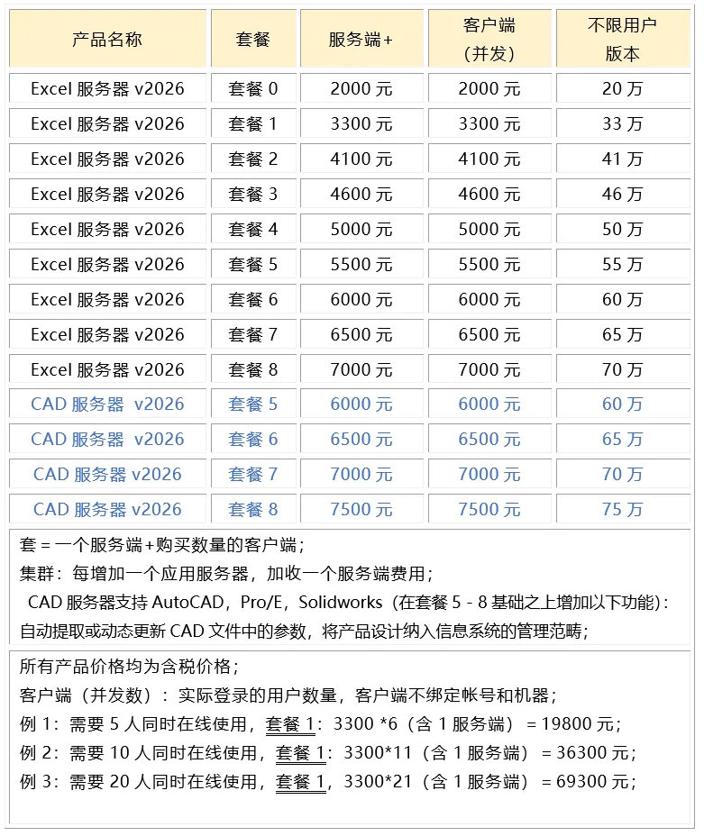 『Excel服务器2026产品价格』