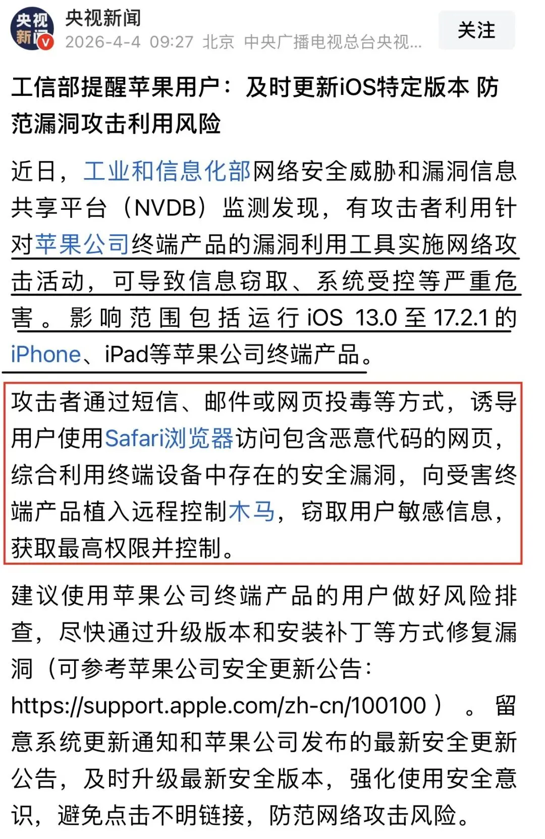 央视/工信部提醒: