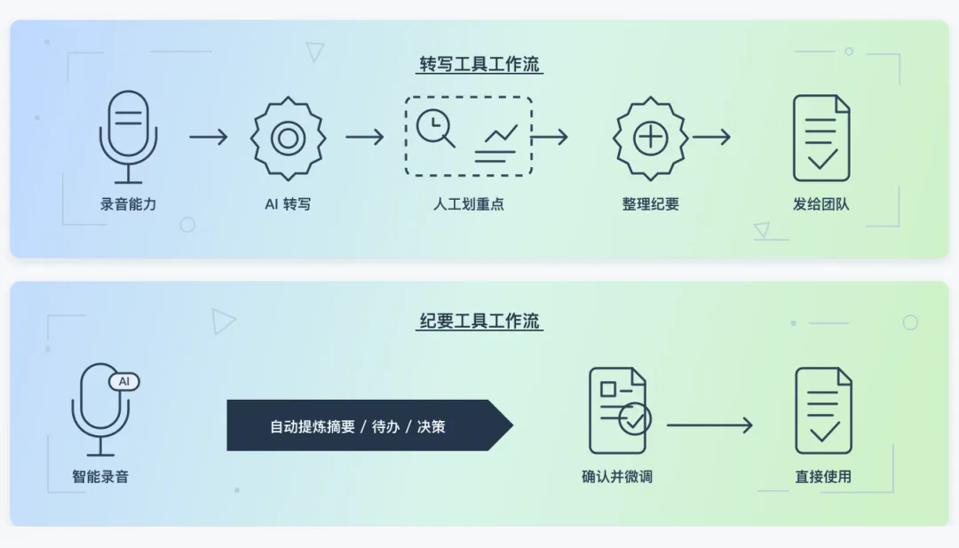 纪要工具不是在转写后面加一个总结,而是把整个”会后整理”环节省掉了。