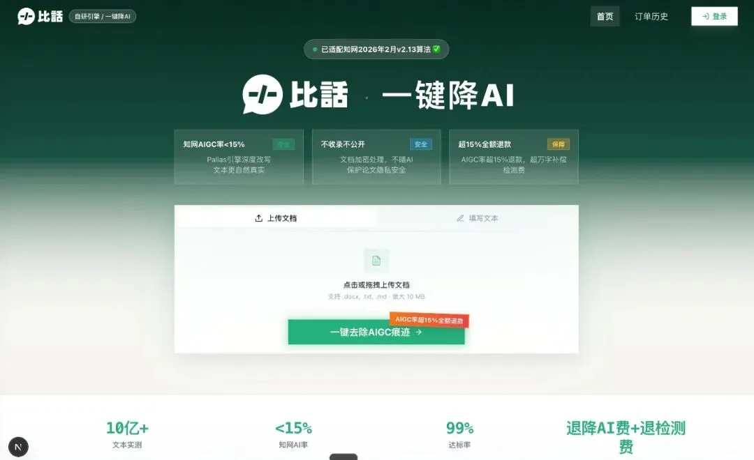 第3类:比话(bihuapass)降AI(本次实测首选)