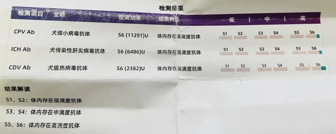 多崽体内对犬瘟、细小这些病毒的抗体水平都在安全范围内。也就是说,今年真的不用打卫佳捌疫苗了。