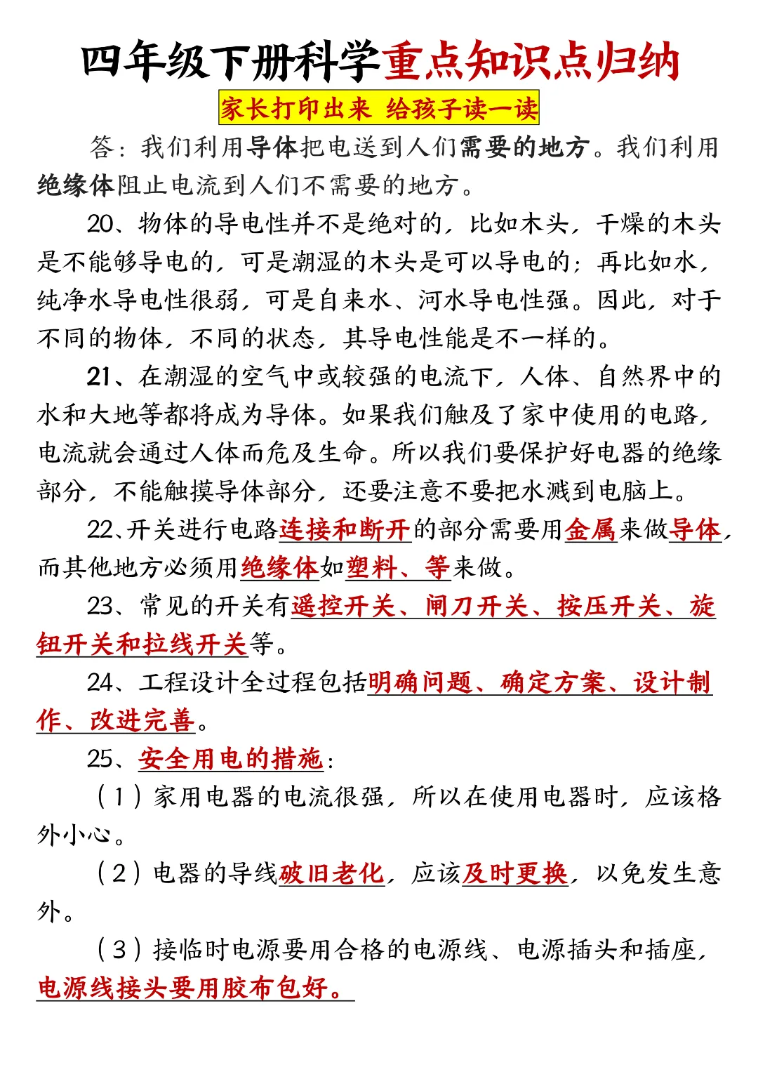 26春四年级下册科学重点知识点归纳《教科版》|完整电子版可打印!