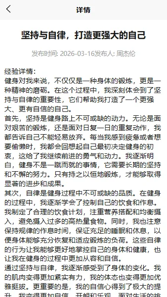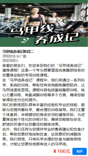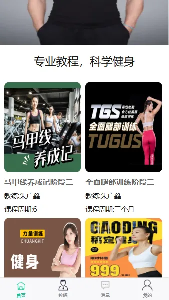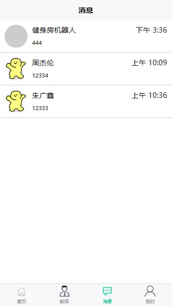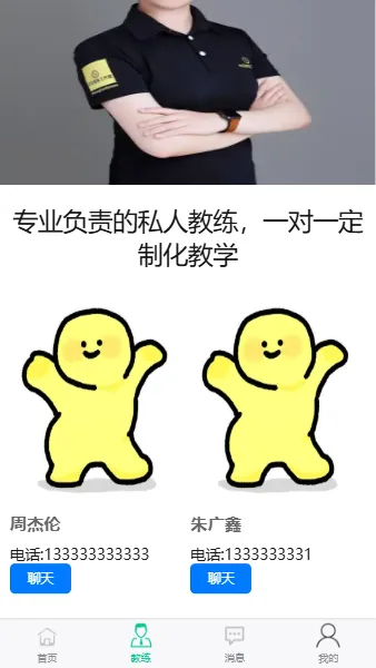 概述:与PC端功能差不多,用户可以查看自己的课程,器材预约,经验分享,可以与教练聊天