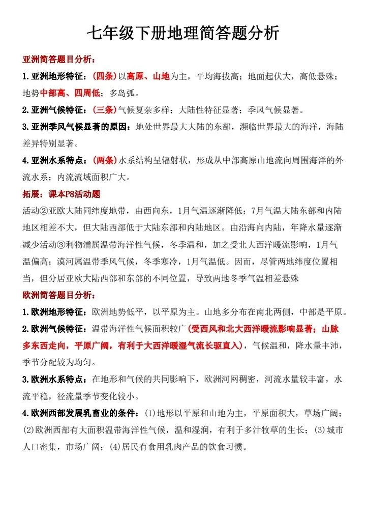 今日分享26新七年级下册地理简答题分析(完整电子版可打印)!高清可打印,每日轻量练习,拒绝无效刷题,用系统化资料筑牢学科基础,让假期成为提升的黄金期,开学轻松领跑。