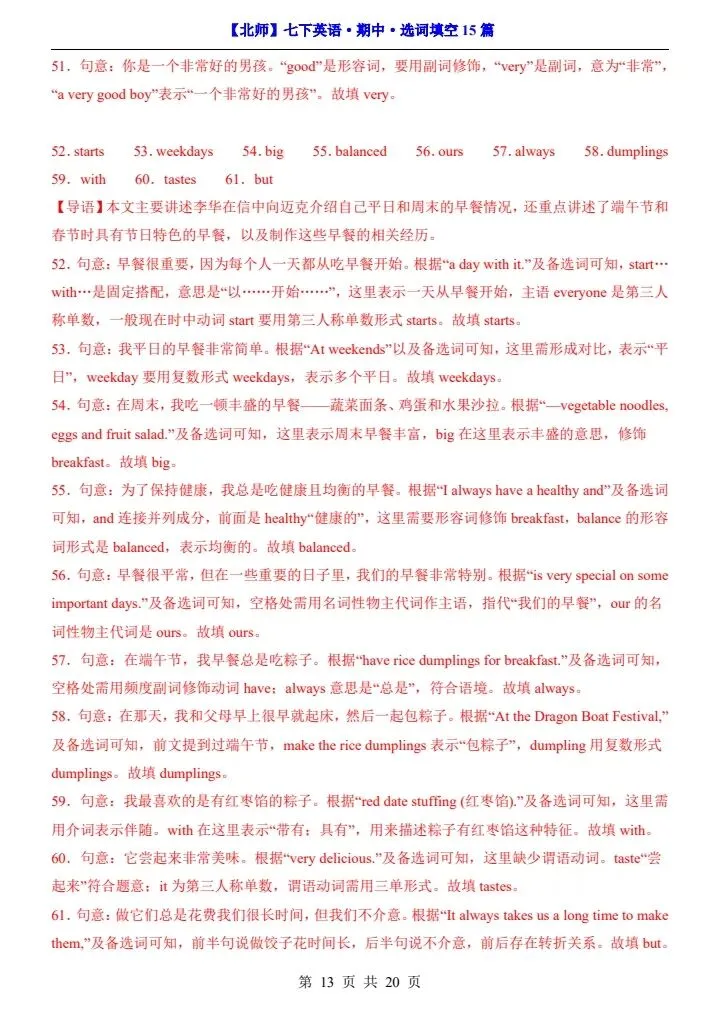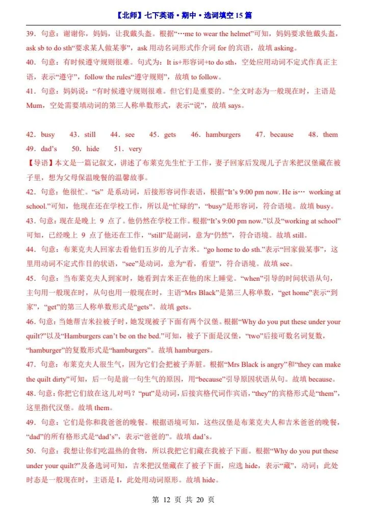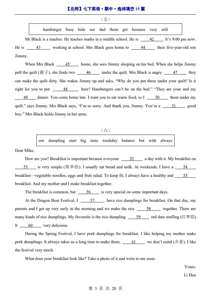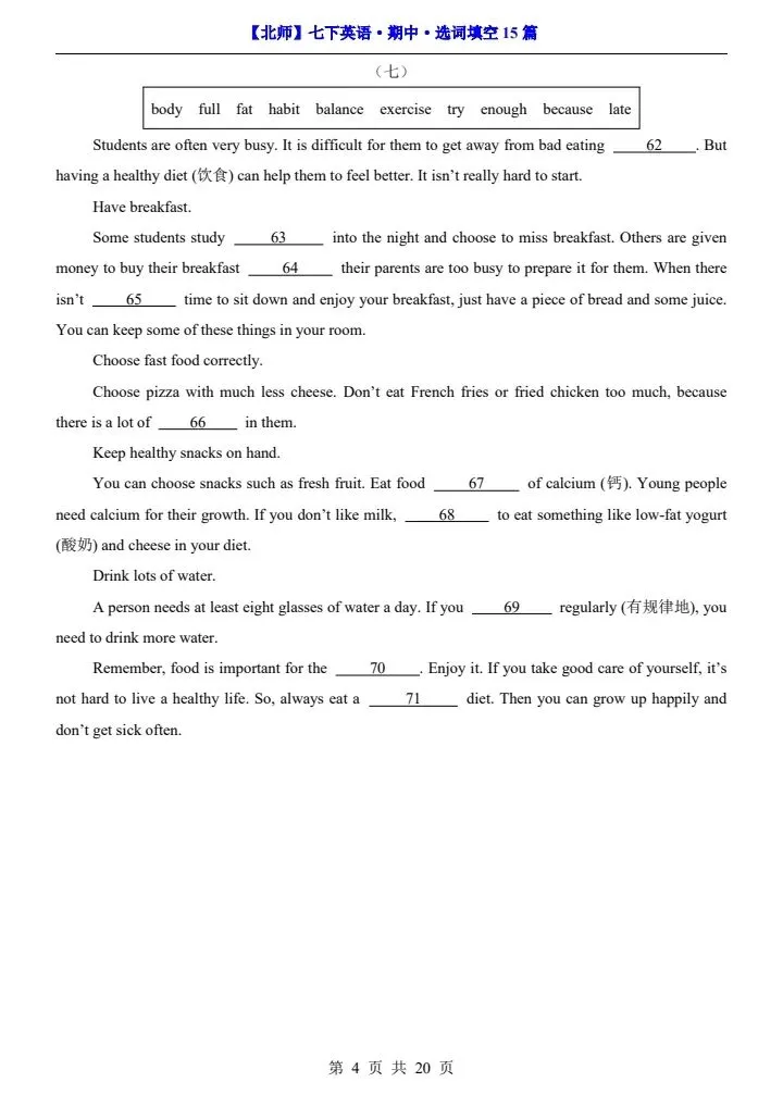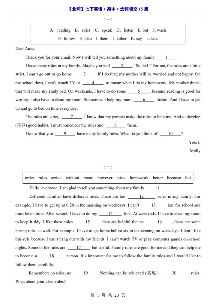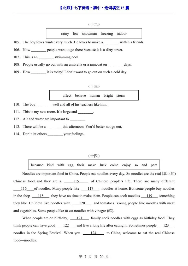 寒假蓄力,进阶不停歇。今日分享【北师版】26春七年级下册英语期中选词填空15篇(阅读专项)完整电子版可打印!高清可打印,每日轻量练习,拒绝无效刷题,用系统化资料筑牢学科基础,让假期成为提升的黄金期,开学轻松领跑。