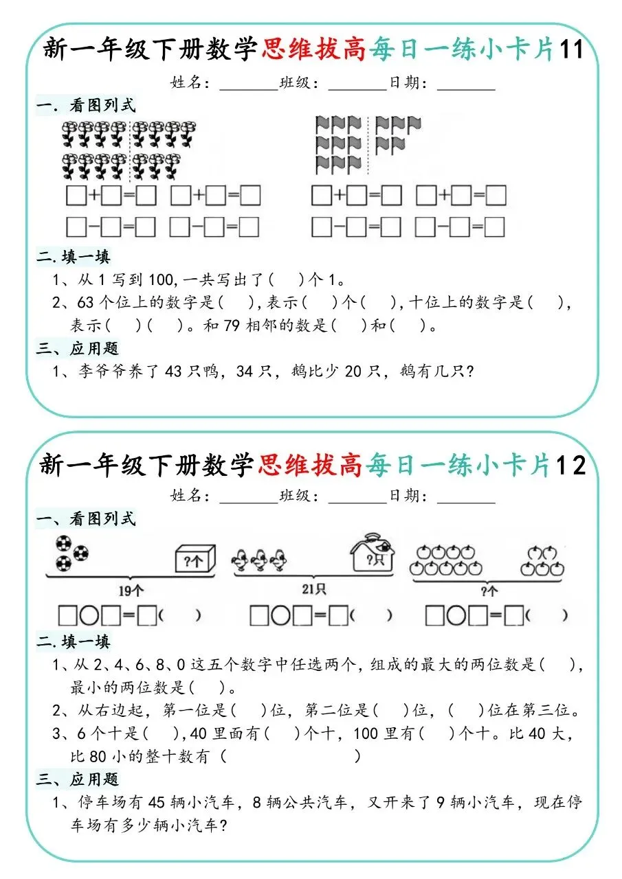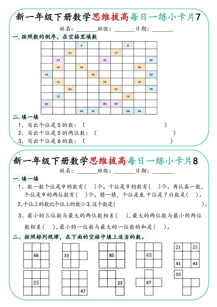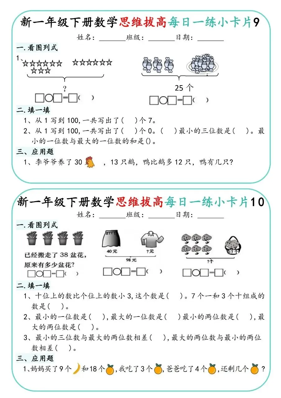 一下人教数学-思维拔高每日一练小卡片30天电子版免费下载!