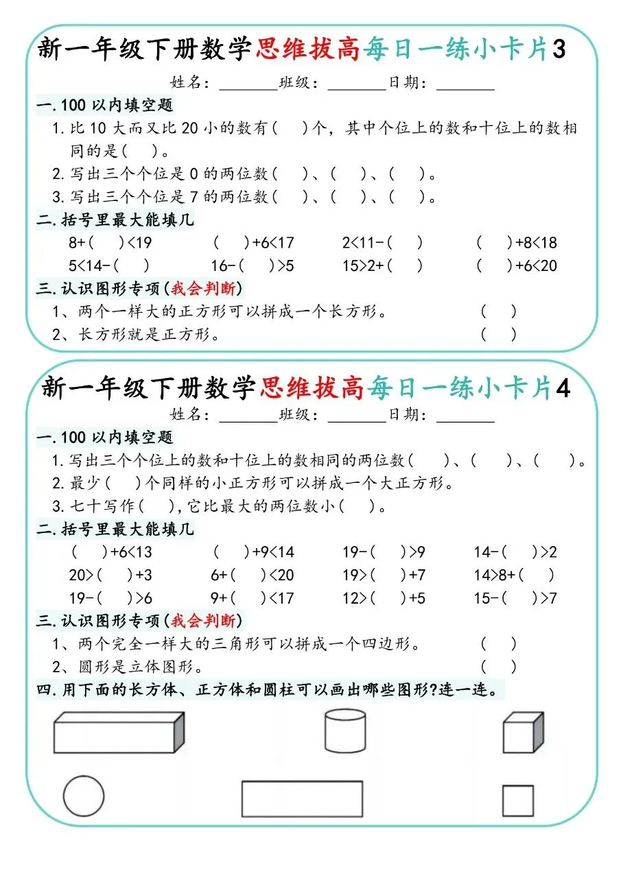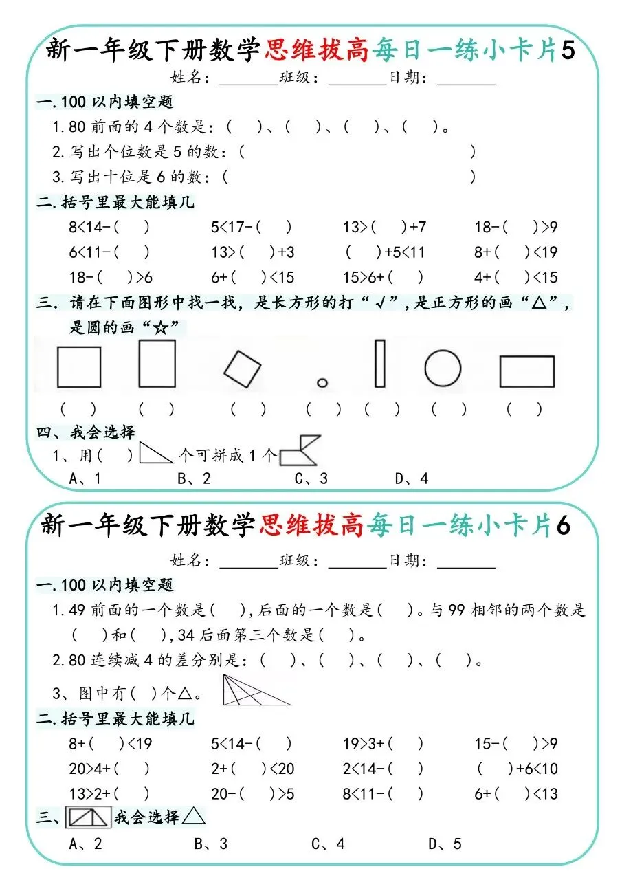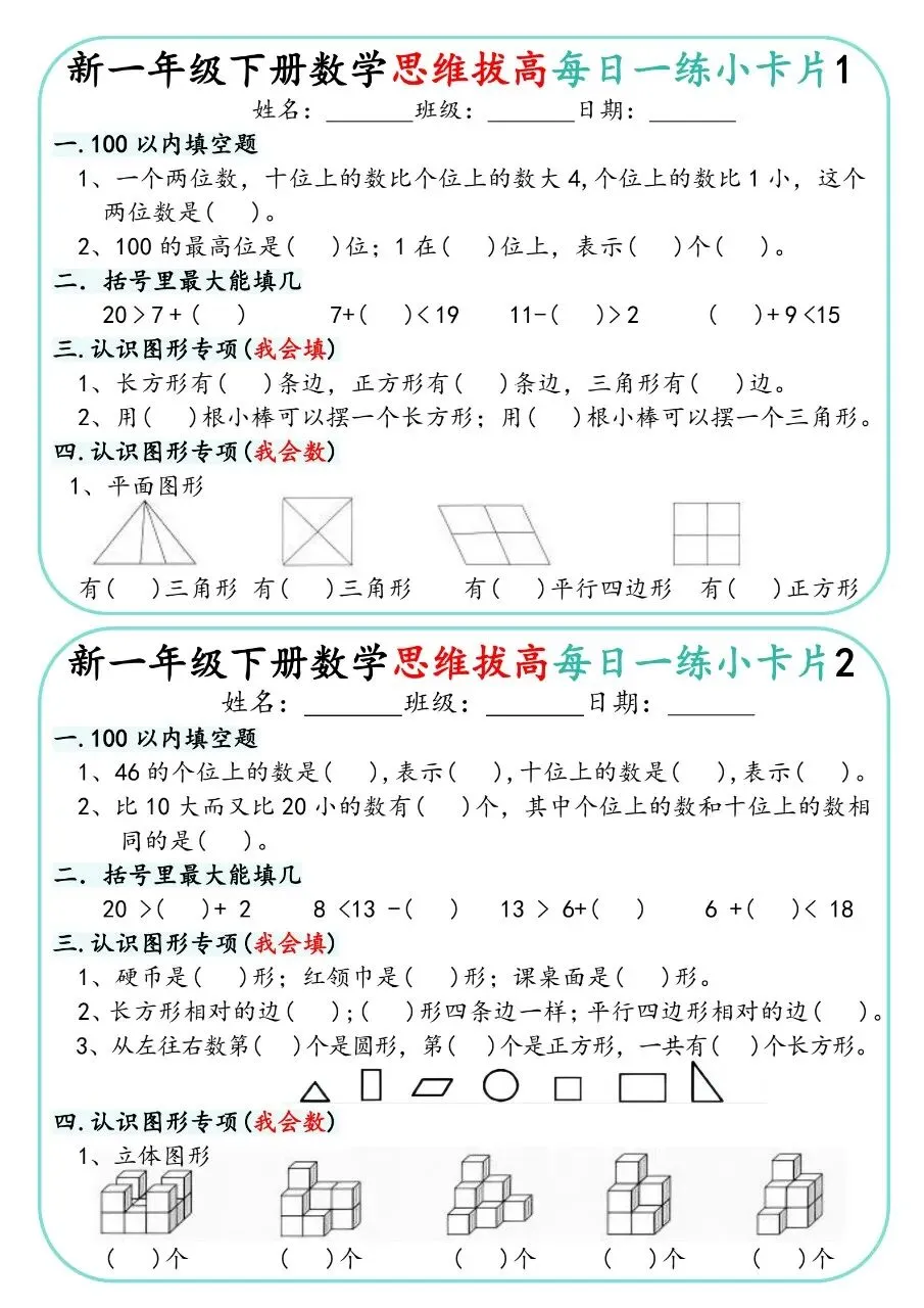 一下人教数学-思维拔高每日一练小卡片30天电子版免费下载!