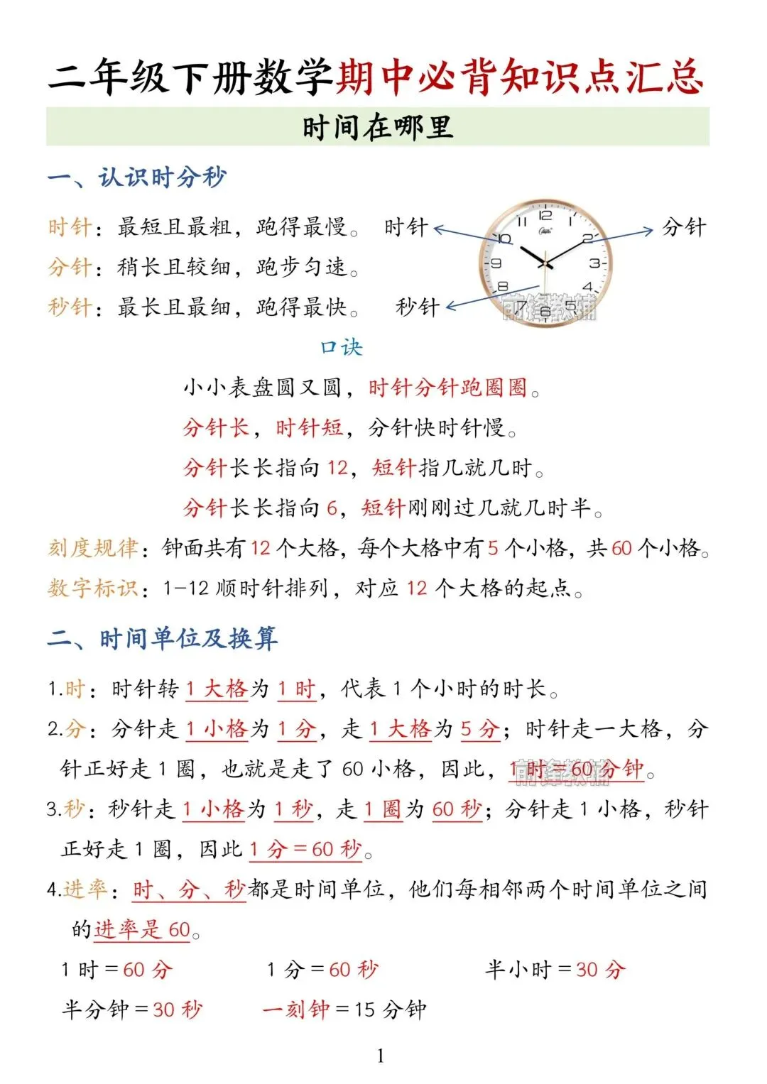 老师刚整理的,二年级下册数学期中必背知识点汇总(共8页)!家长看文末领取方式,给孩子领回去打印出来练习吧!