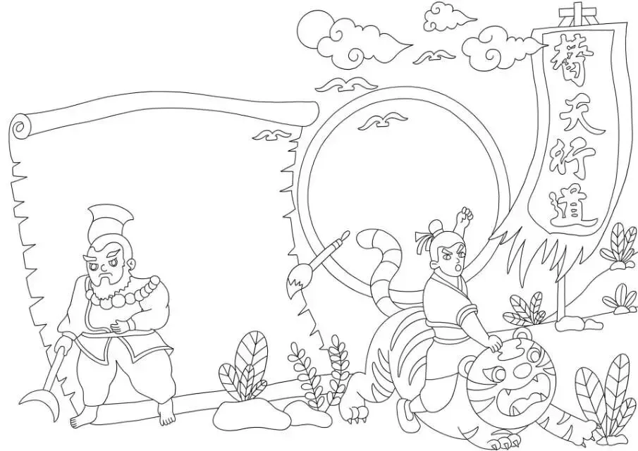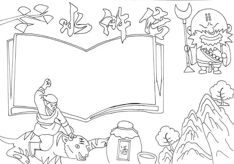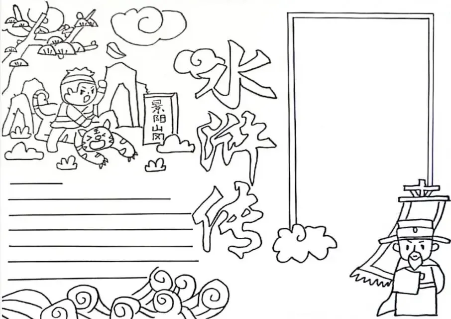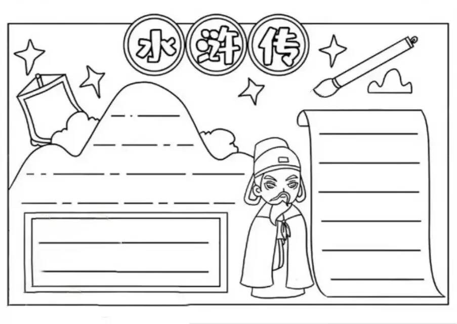 水浒传手抄报|线稿可打印