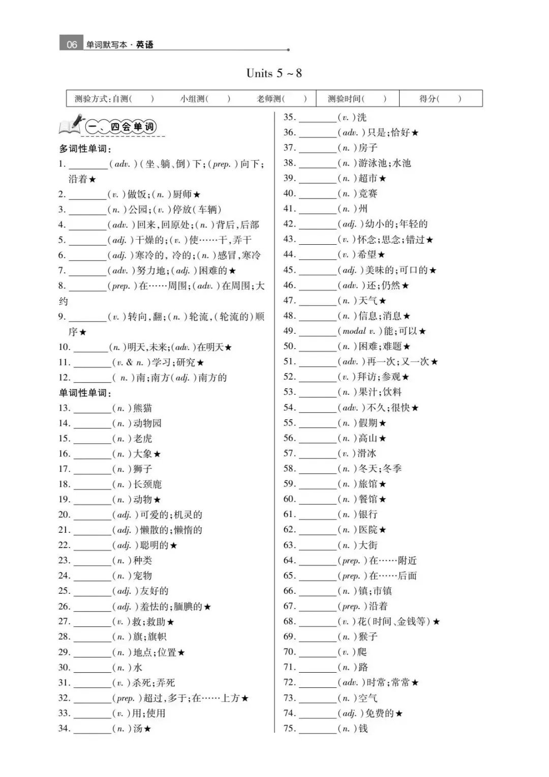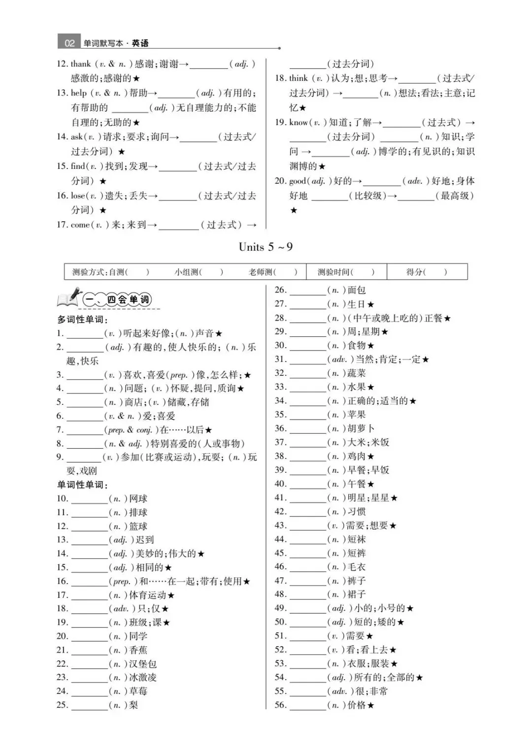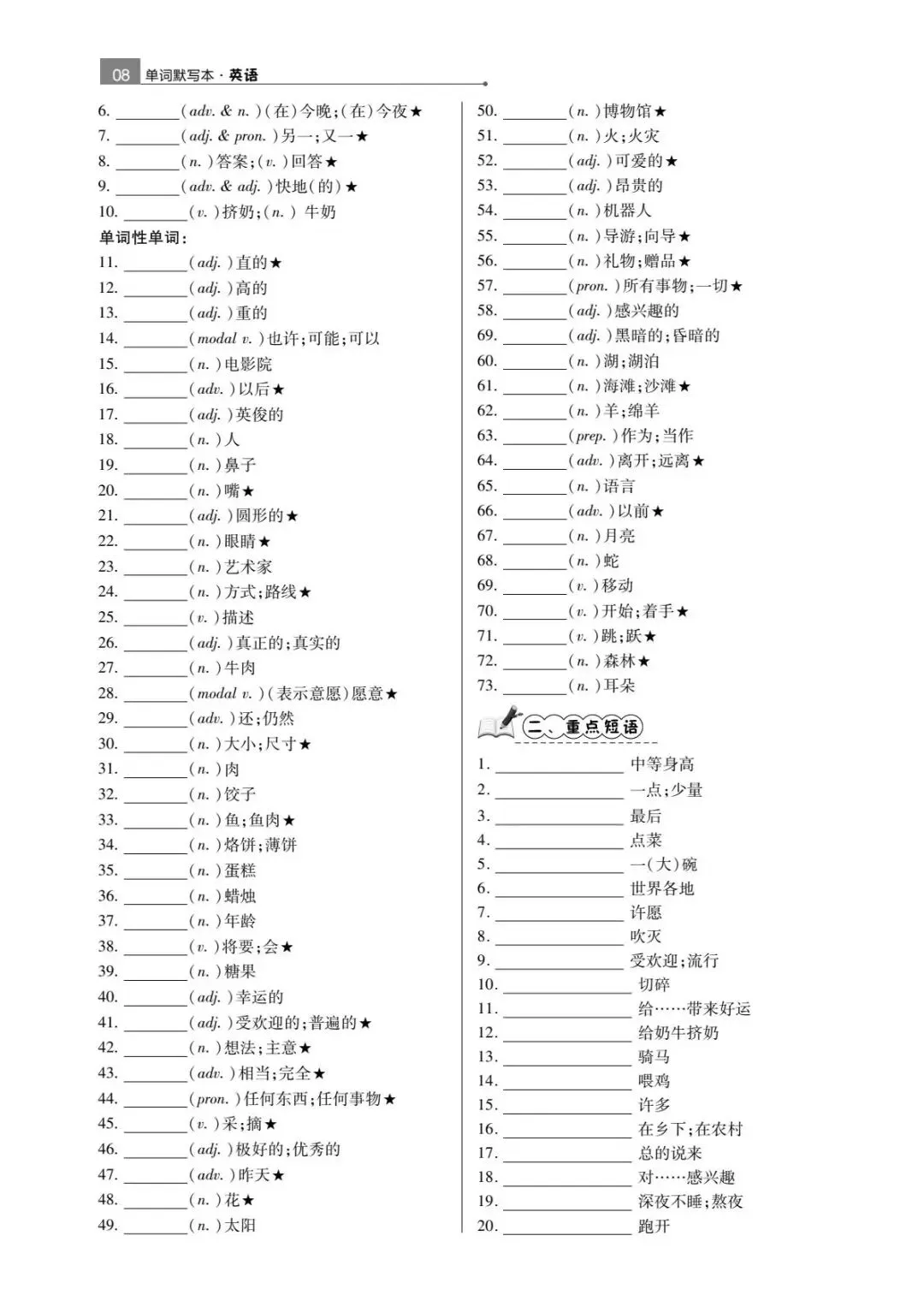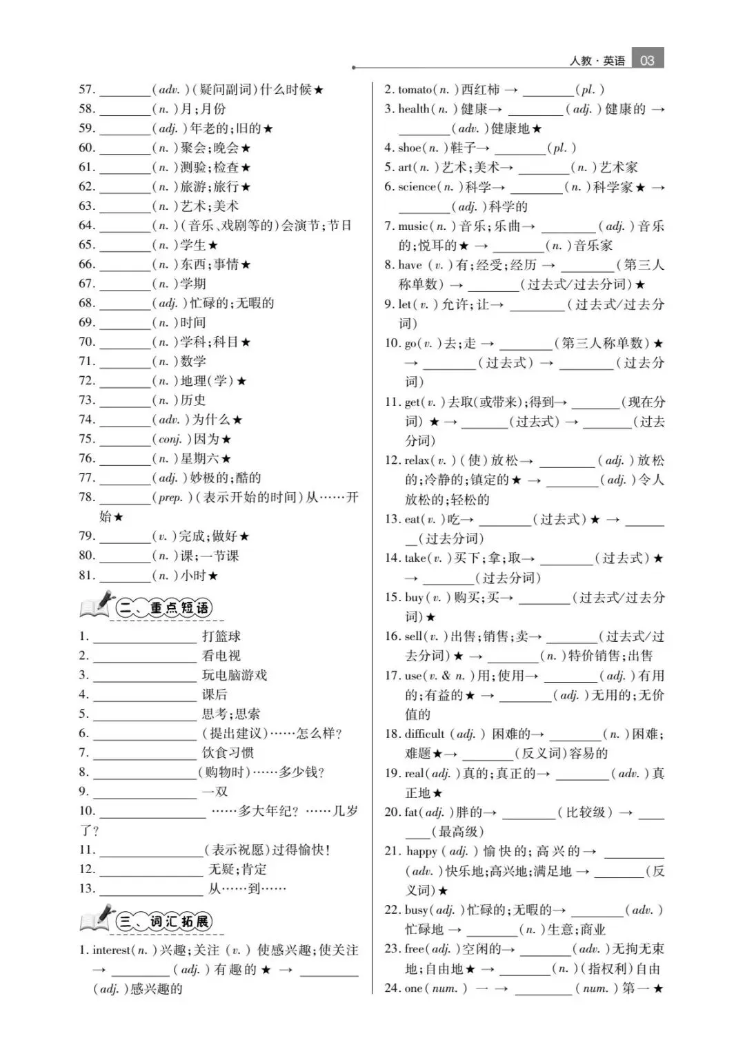 《人教PEP版初中英语7-9年级单词词组默写练习》高清电子版可下载打印