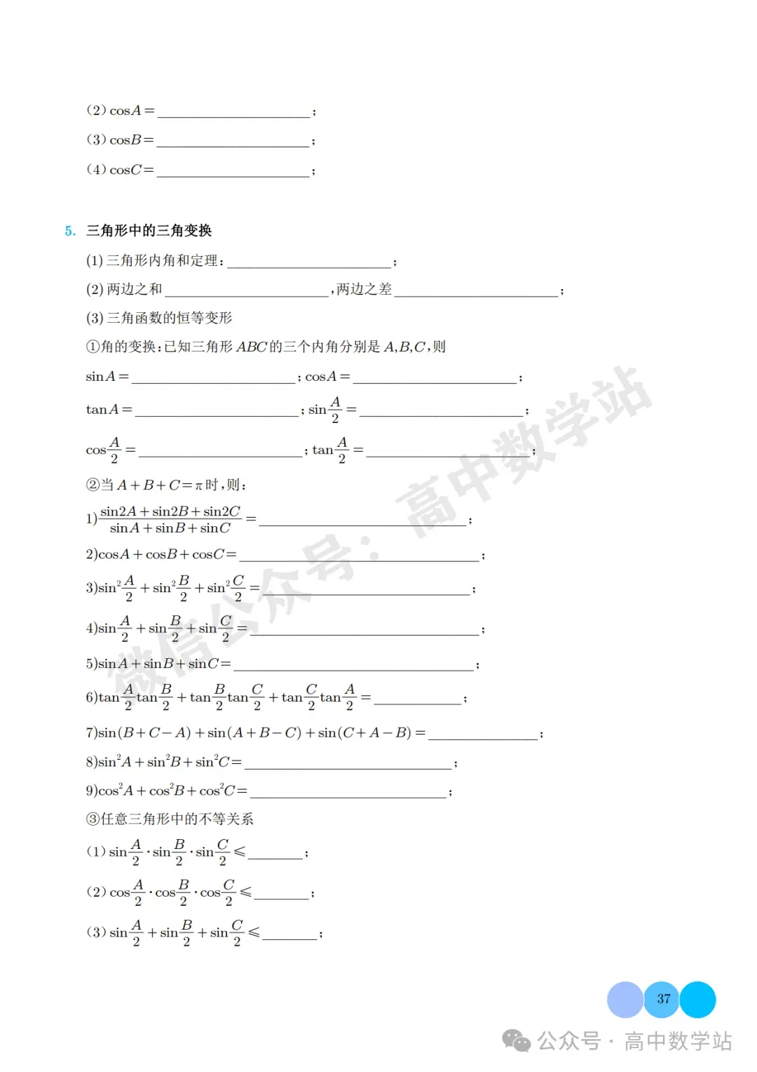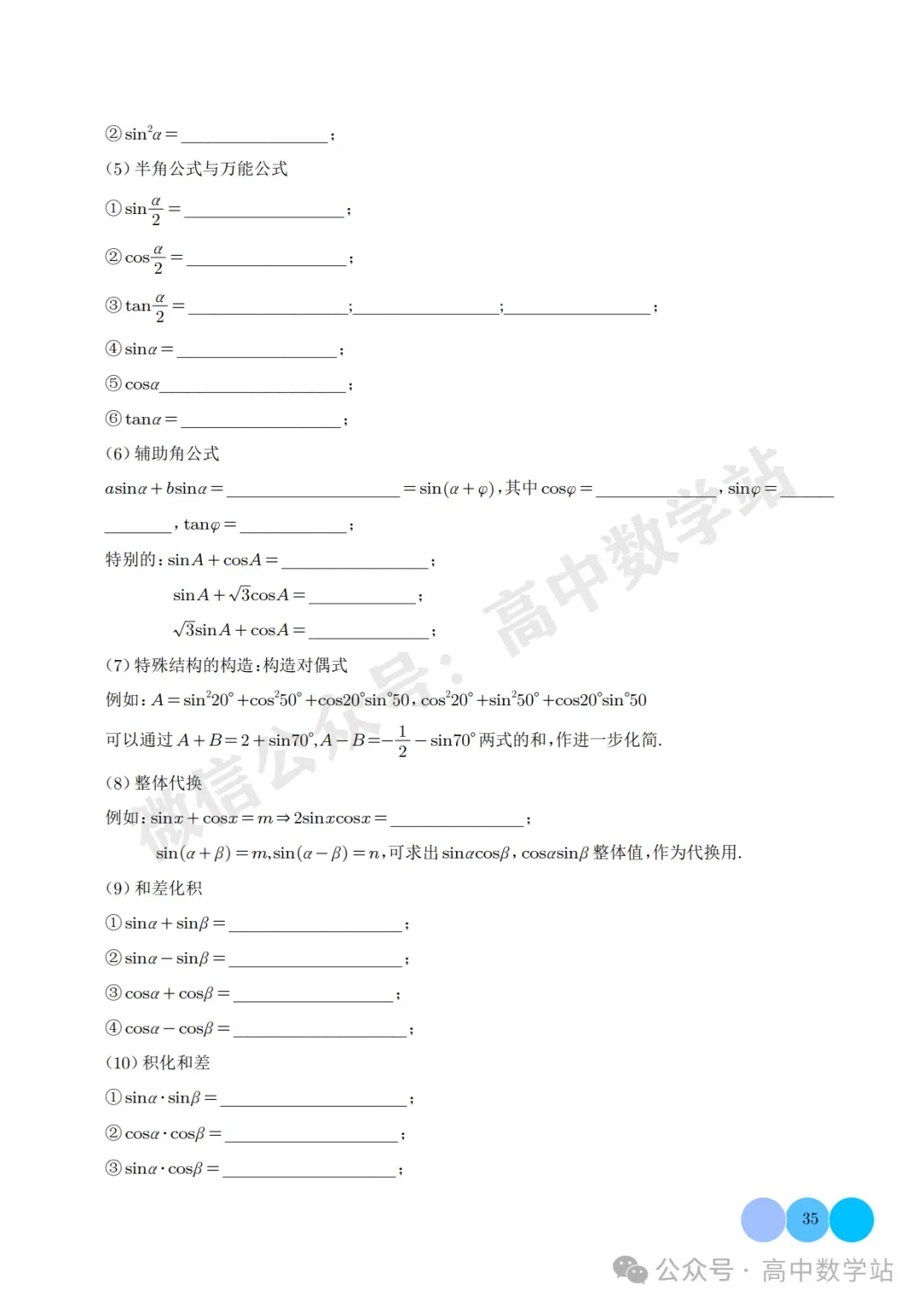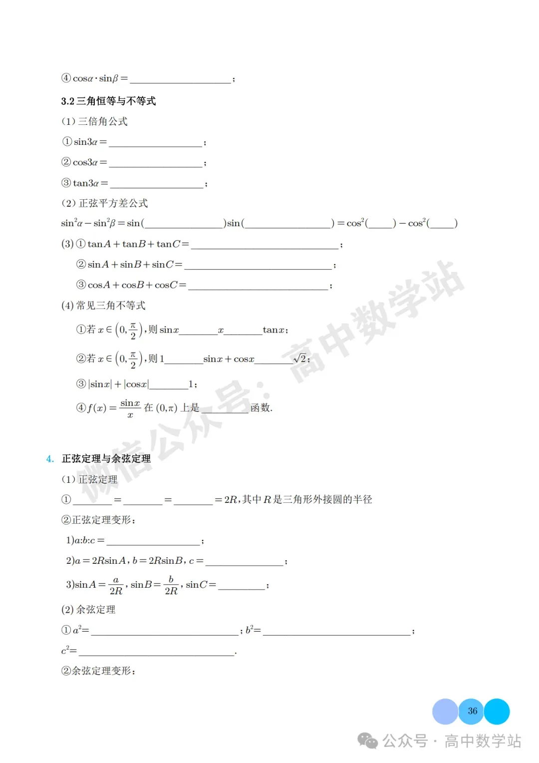 高中数学公式与二级结论全测(可打印) 点击👆高中数学站👇关注我,加★星标★ 今天老师给大家整理了:高中数学公式与二级结论全测。 老师已为大家备好电子打印版,想要获取电子打印版请拉到文末查看。 (点击可查看大图,超清晰) 扫描下方二维码 进入“高中数学站”的后台 点击后台左下方小键盘图标 发送消息 4月资料 即可获取打印版