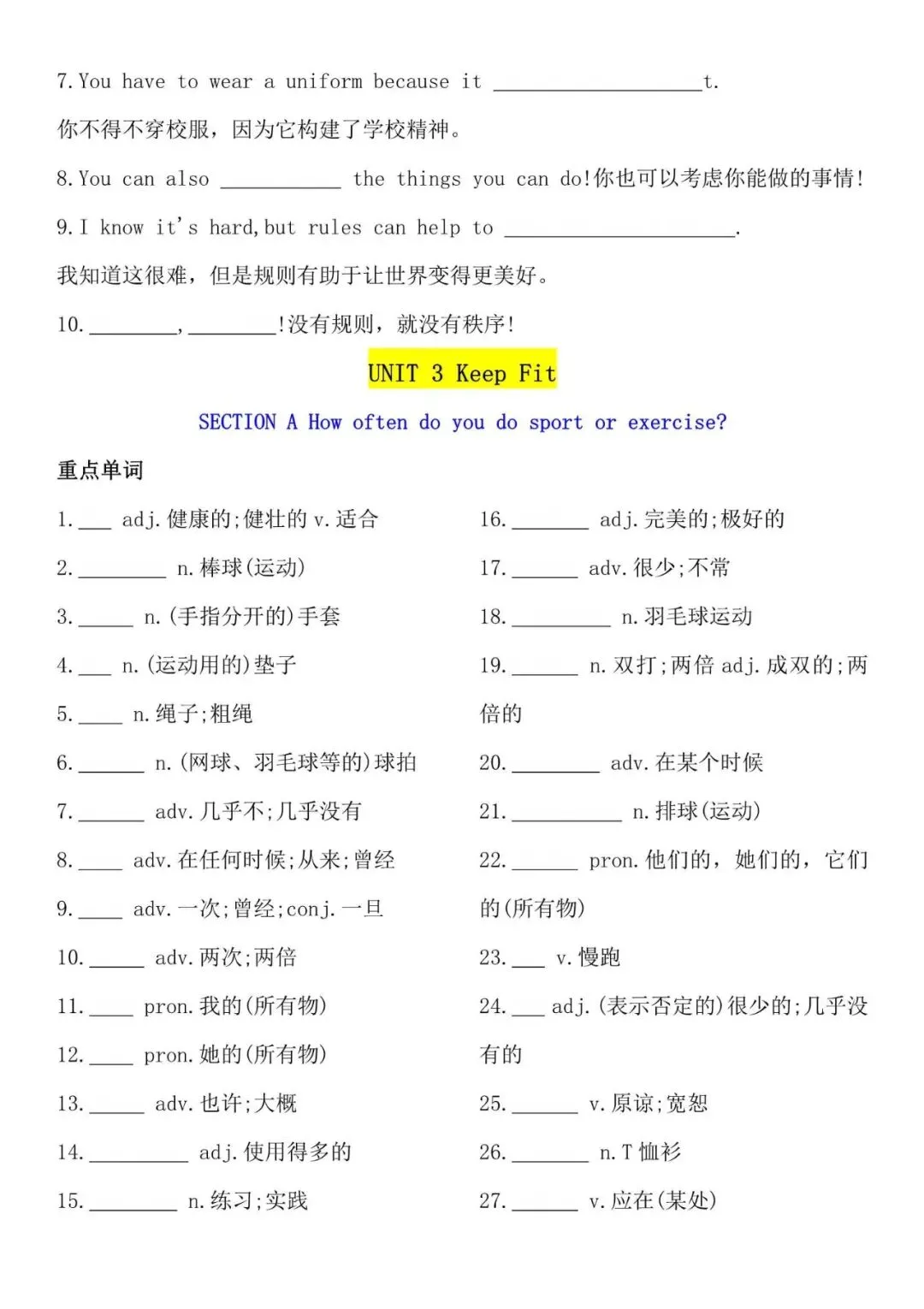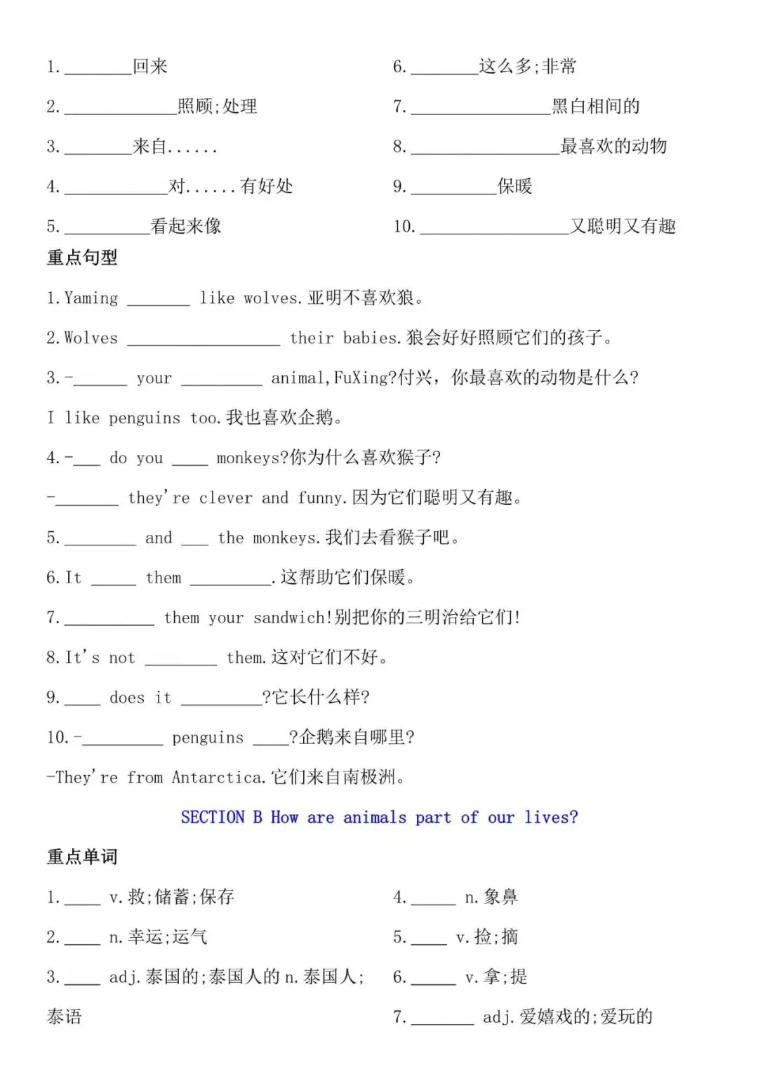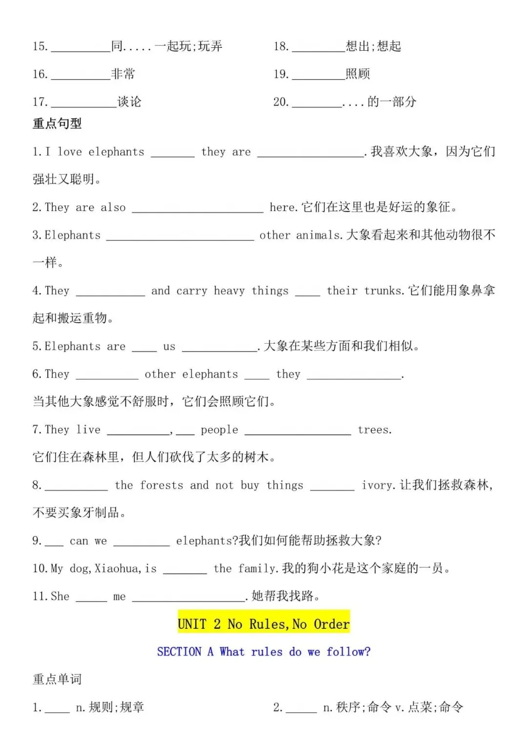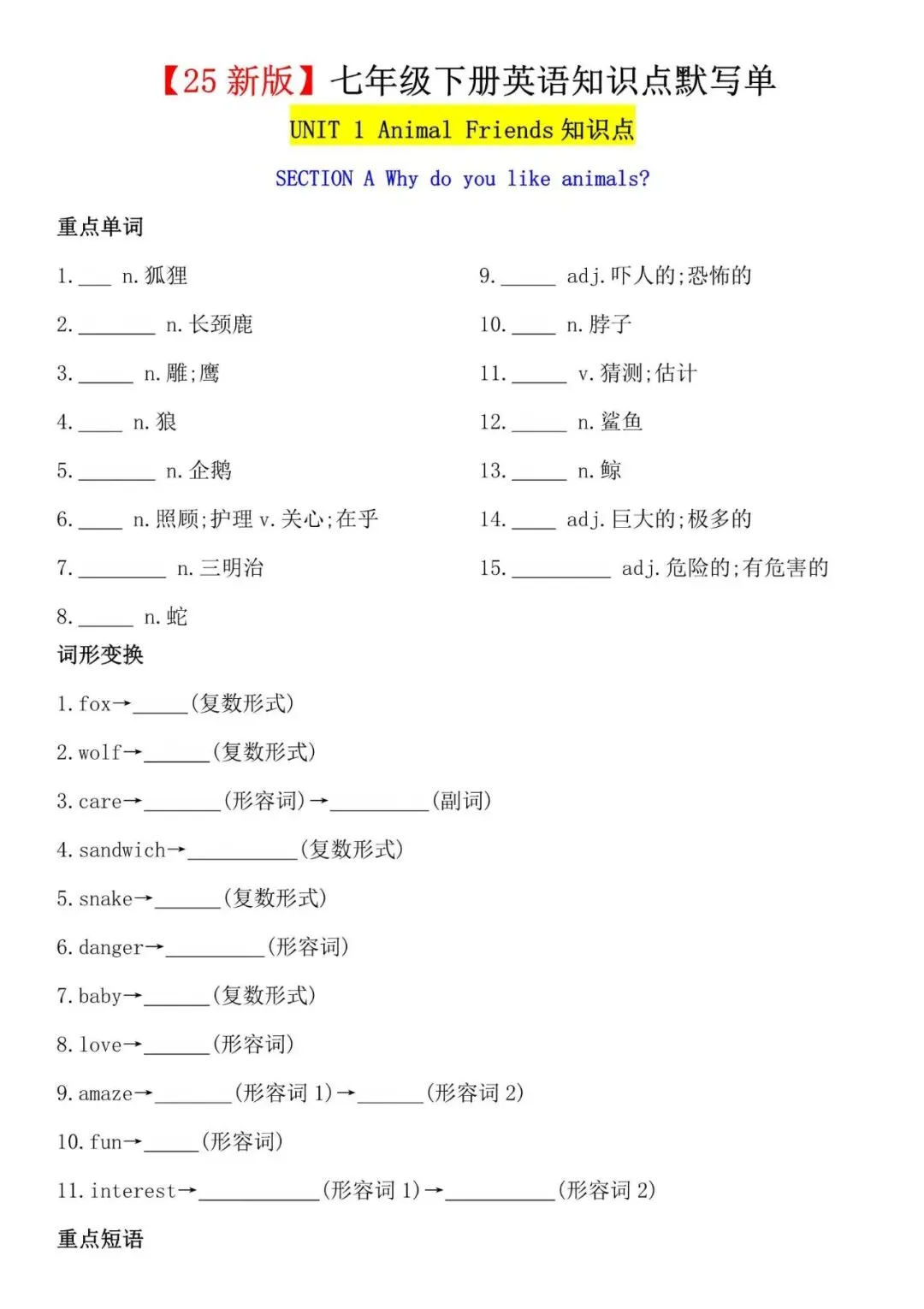 七下英语全册默写汇总,背完考试不丢分,电子版可打印