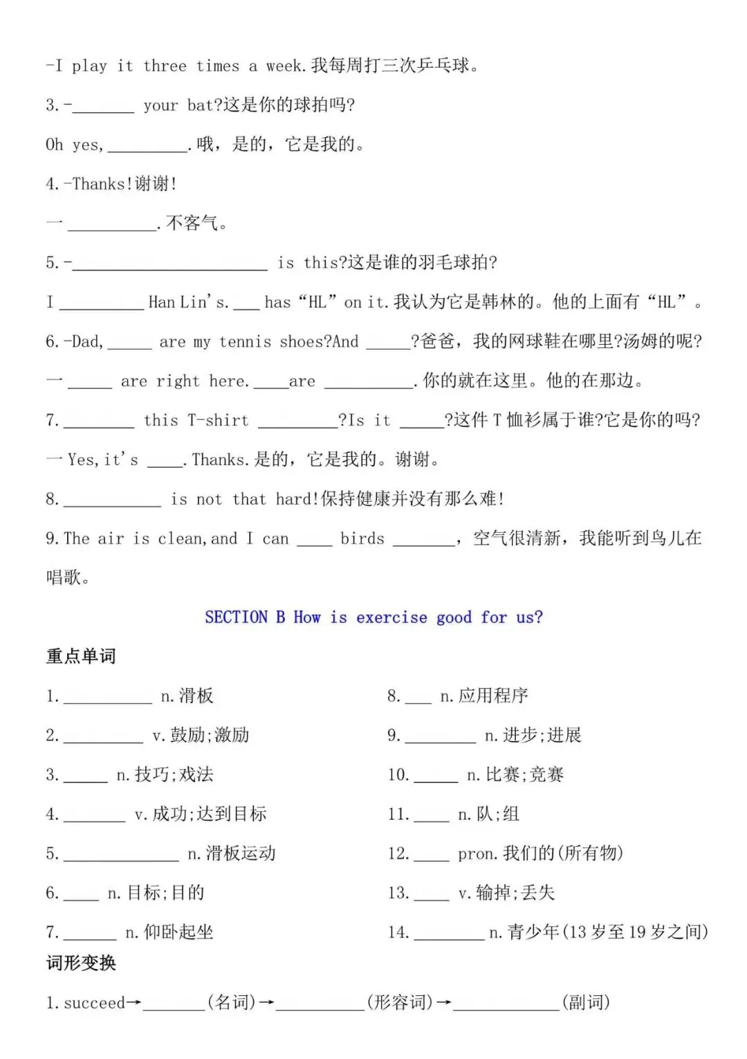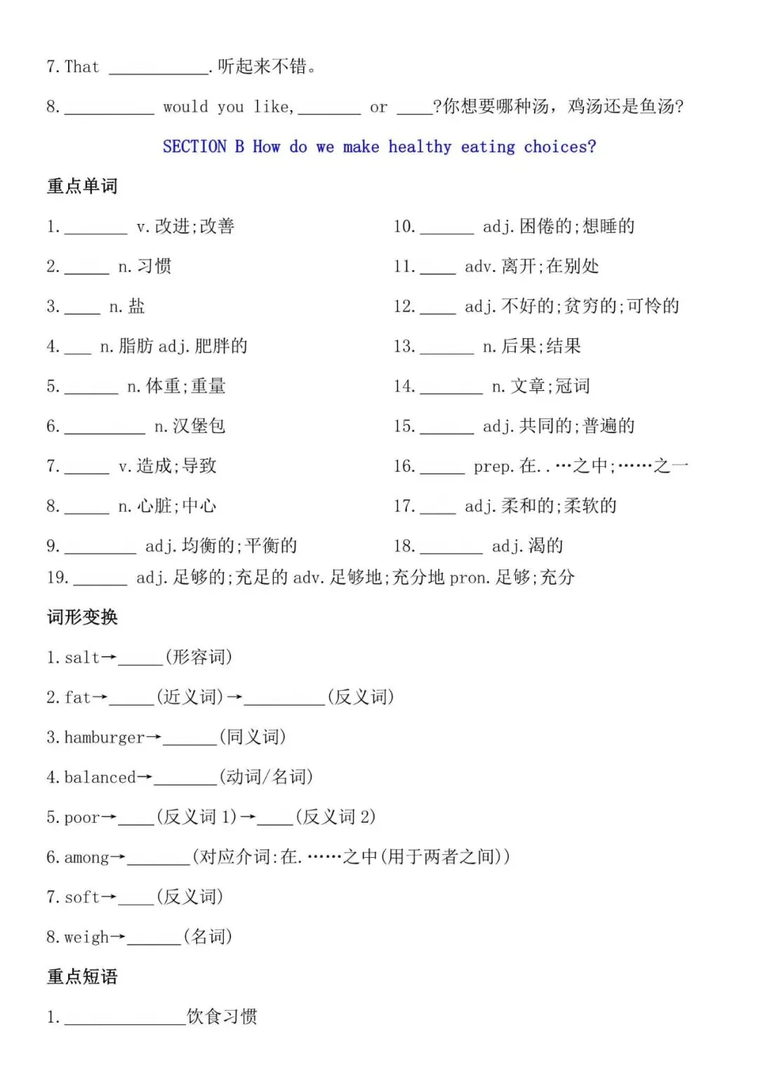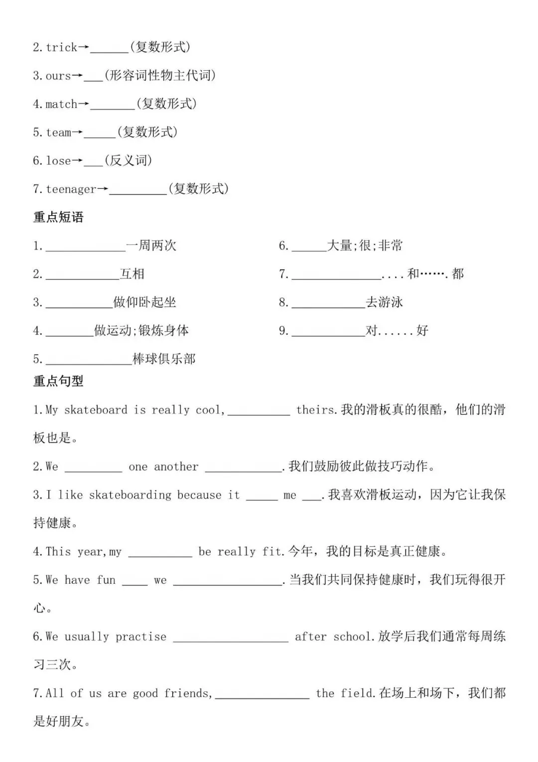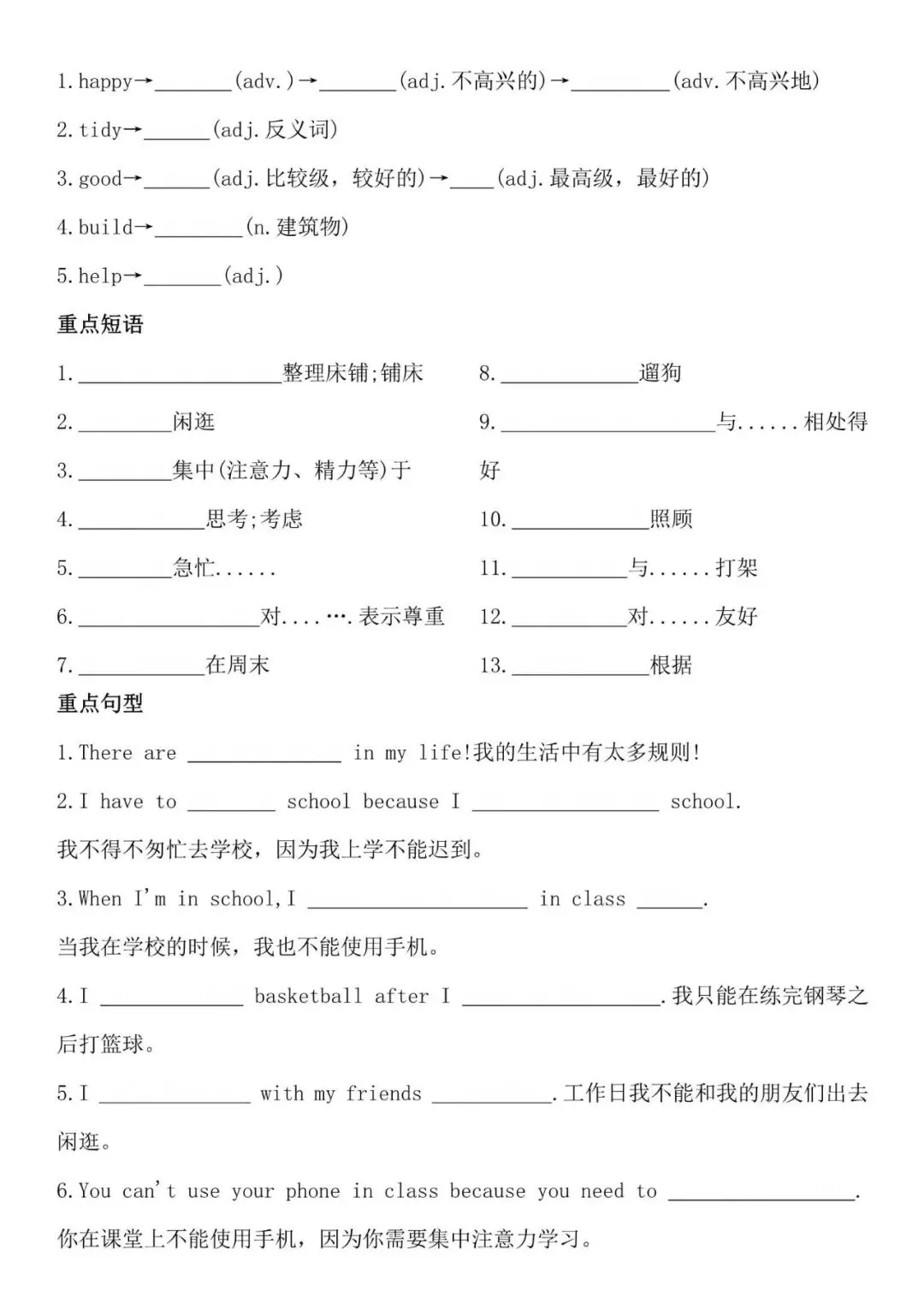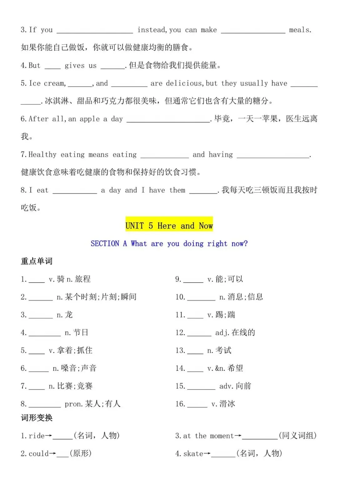 七下英语全册默写汇总,背完考试不丢分,电子版可打印
