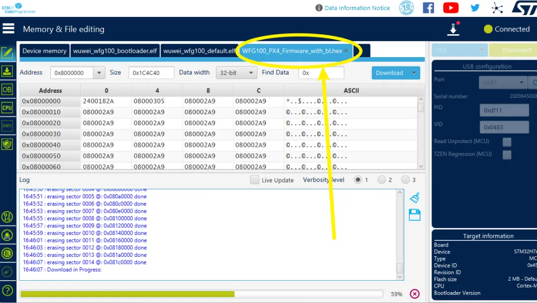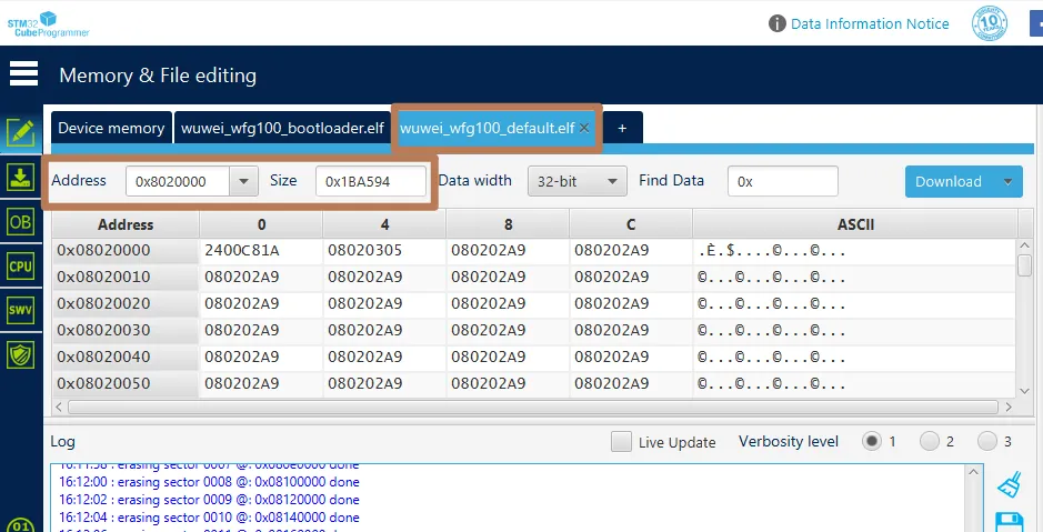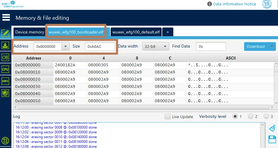 最终都没报错,固件也生成了,但是烧录以后发现程序没启动,QGC地面站也没连上。我猜测应该是PX4主程序的地址不对,于是又在STM32cubeprogrammer分别打开了bootloader和firmware的.elf格式的固件,把这两张图中的地址和大小标记后,扔给了AI。